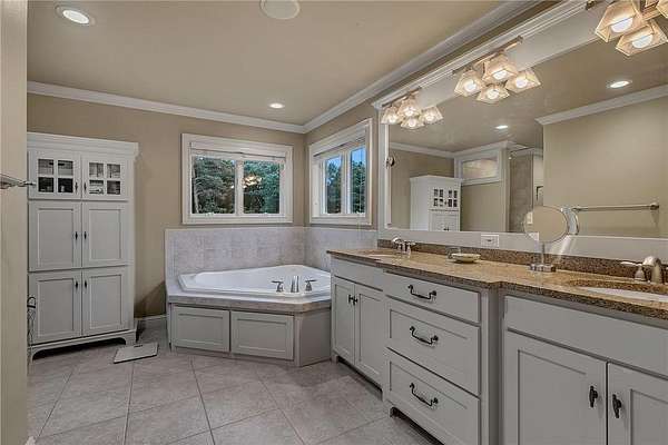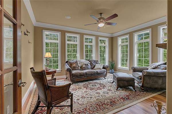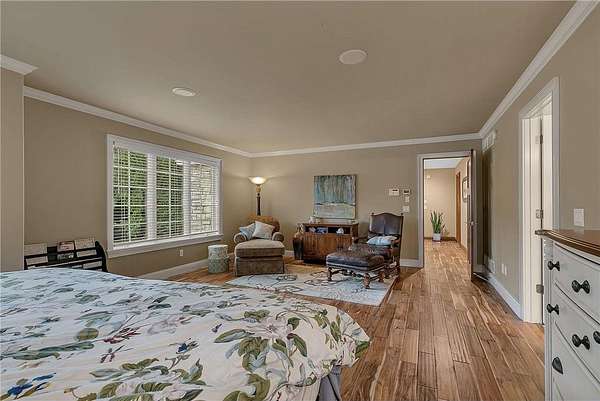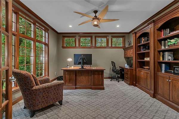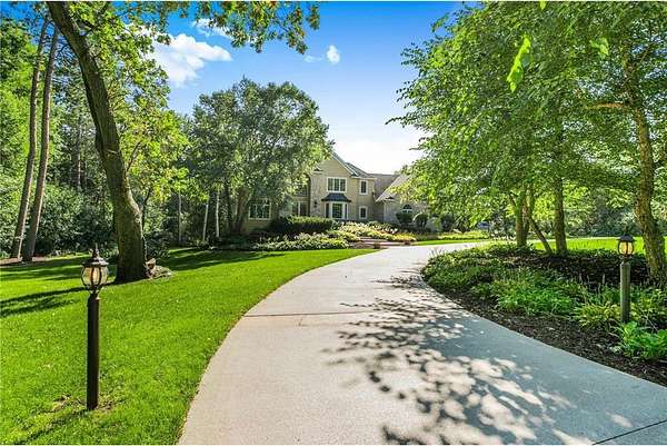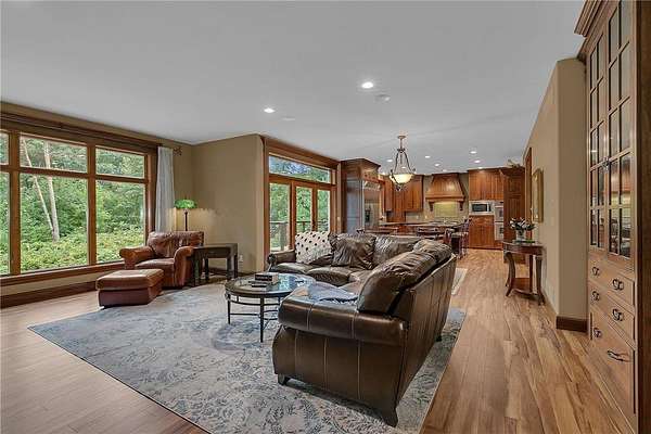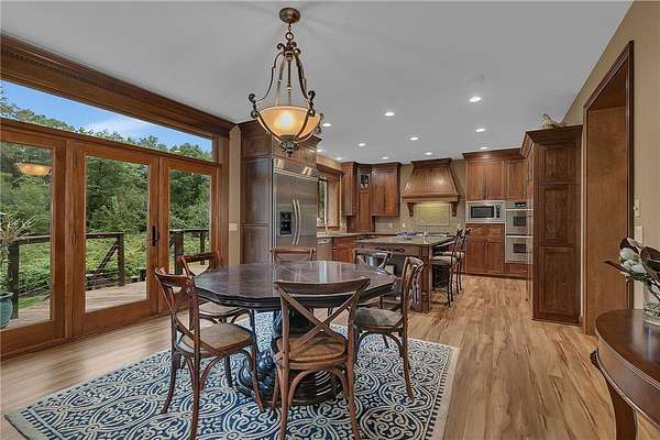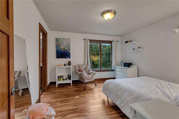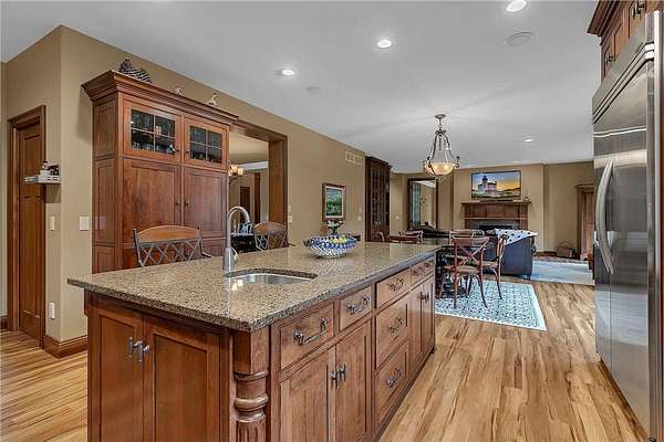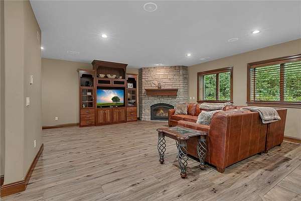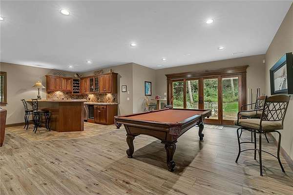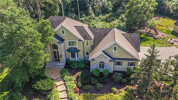 Tucked away on over two wooded acres in Sartell, this stunning custom-built two-story home offers privacy, space, and high-end finishes throughout. A grand double-door entry welcomes you to the main level with 9-foot ceilings, new plank flooring, and large windows overlooking the secluded lot. The spacious great room flows seamlessly from the living room with fireplace into the informal dining area and gourmet kitchen featuring custom cherry cabinetry, granite counters, tile backsplash, a large pantry, and premium appliances including double wall ovens and a 36-inch gas cooktop. Additional highlights on the main floor include a formal dining room, bright den, sunroom with serene views, oversized laundry, and a generous mudroom. Upstairs, you’ll find three bedrooms with acacia wood floors, including a massive primary suite with a sitting area, private bath with tile walk-in shower, separate tub, and dual vanities. The other bedrooms share a Jack and Jill bath. The walkout lower level impresses with 8 ½-foot ceilings, a huge family room with wet bar, rec room, dedicated exercise room, another bedroom, and a bath with tile shower, along with ample finished storage and direct garage access. The 40-foot-wide heated garage, with one stall extending 34 feet deep, has epoxy floors and is fully finished. Offering luxury and seclusion just minutes from town, this property is a rare find in Sartell!