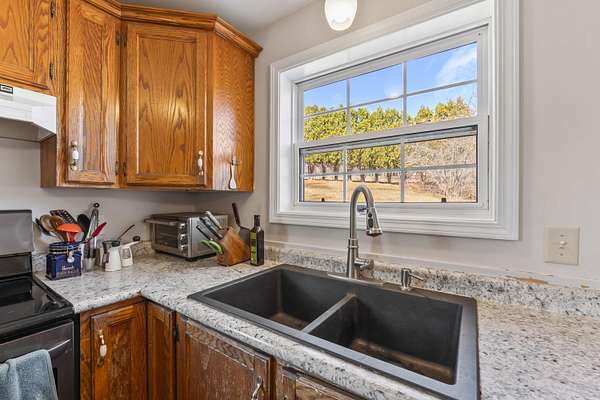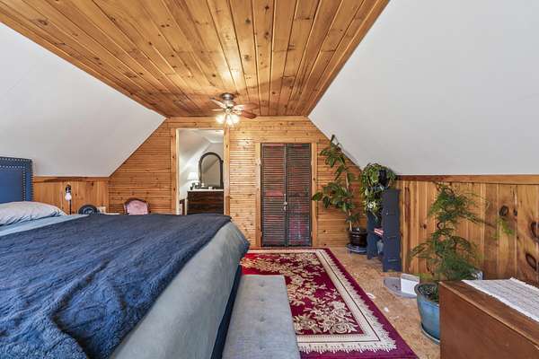 Recent improvements include updated windows, a newer roof, new decks, a new heating system, solid surface work on the driveway, and the addition of proper gutters designed to divert rain runoff away from the home. It also includes a generator hook up.
