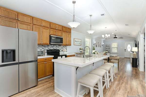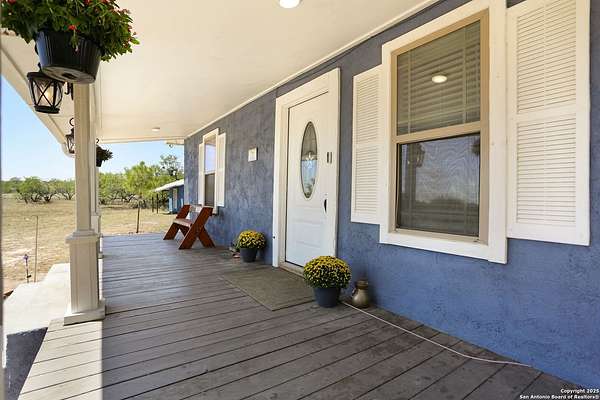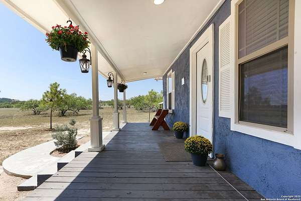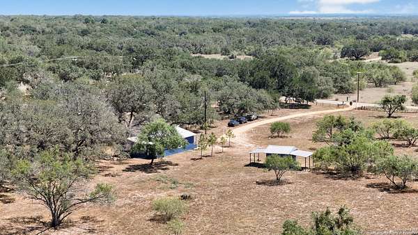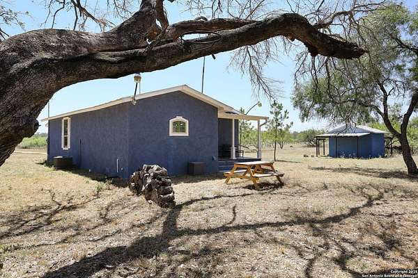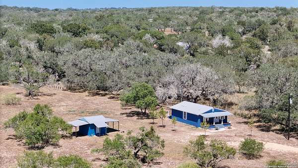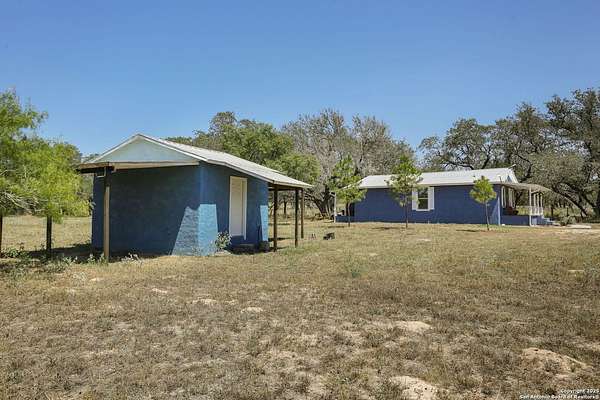 Nestled on 10 private UNRESTRICTED acres in the esteemed Clear Lake Ranches community of Poteet, Texas, 90 Clear Lake Loop offers a rare blend of modern luxury and rural tranquility. Built in 2020, this 1,204-square-foot home features an open-concept design with three spacious bedrooms, each with its own private en suite bathroom-providing ultimate comfort and privacy for family and guests. The home's three-sided masonry and metal roof provide durability and a sleek aesthetic, while expansive windows invite natural light to fill the space. Step outside to a covered patio perfect for entertaining or relaxing under the stars. A detached storage structure adds convenience, and the vast lot offers endless possibilities for outdoor activities, gardening, or simply enjoying the serene Texas Hill Country skies. Living in Poteet means being part of a vibrant community with a rich cultural heritage. The town is renowned for its annual Strawberry Festival, held every April, which features live music, carnival rides, arts and crafts vendors, and, of course, delicious strawberry treats. This event not only celebrates the region's agricultural roots but also supports local farmers, nonprofits, and small businesses. With its blend of modern amenities, spacious living, and a vibrant community, 90 Clear Lake Loop presents a unique opportunity to enjoy elevated country living where every bedroom offers its own private retreat.