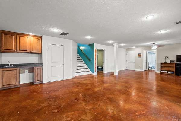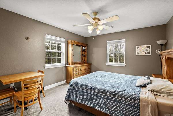 Welcome to your own private retreat at 90 Hayes Hill Road in Conway, Arkansas. Situated on 9.98 acres just outside of town, this stunning property offers the perfect blend of peaceful country living with convenient access to everything Conway has to offer. This show-stopping home features 5 spacious bedrooms, 4 full bathrooms, and two versatile bonus areas; ideal for a home office, media room, playroom, or guest retreat. The layout offers flexibility for multi-generational living or anyone needing extra space to spread out. The kitchen has an incredible amount of storage space along with a large walk-in pantry. Across from the pantry, you'll find a laundry room with a sink and counter. Make your way downstairs, and you'll find 3 bedrooms and 2 bonus spaces. The living area has its own sink as well, & the back bedroom has a built-in safe room for peace of mind. Enjoy the beauty of the outdoors from the expansive back balcony or unwind on the covered lower patio; perfect for entertaining or your morning coffee. Complete with a two-car garage and a large detached shop, there is no shortage of storage or workspace. Be sure to watch the video walkthrough on YouTube. Survey on file!