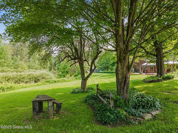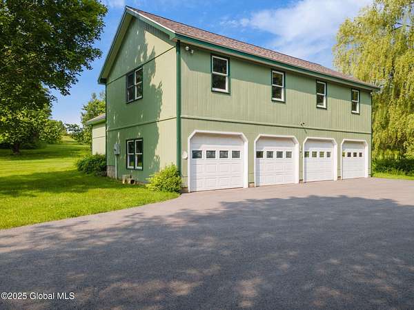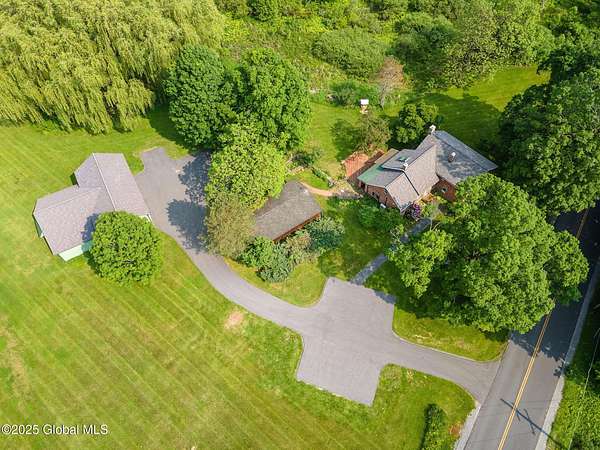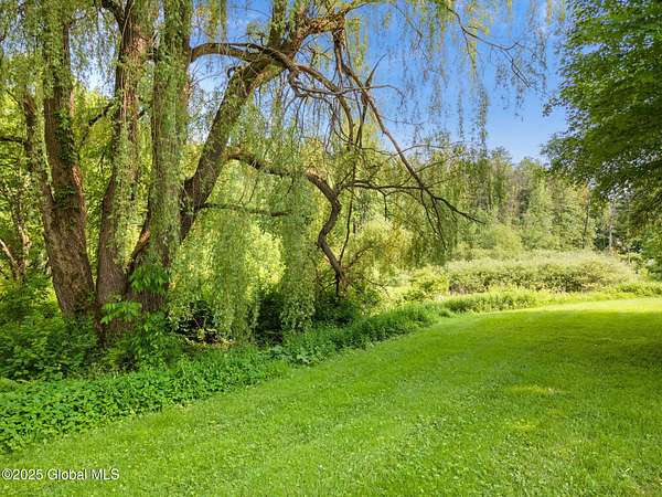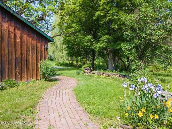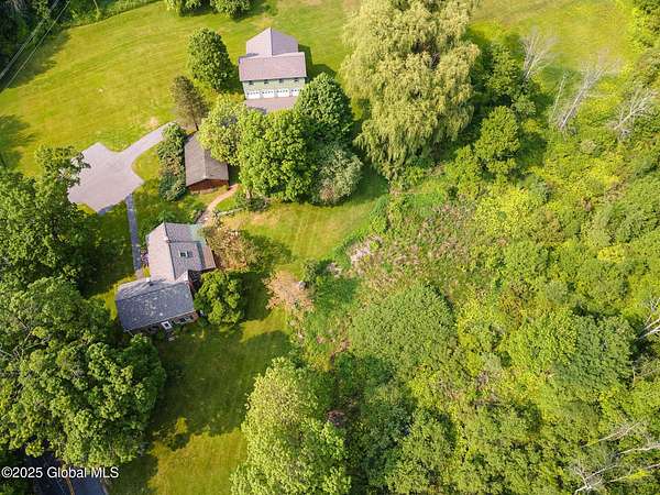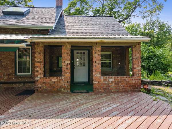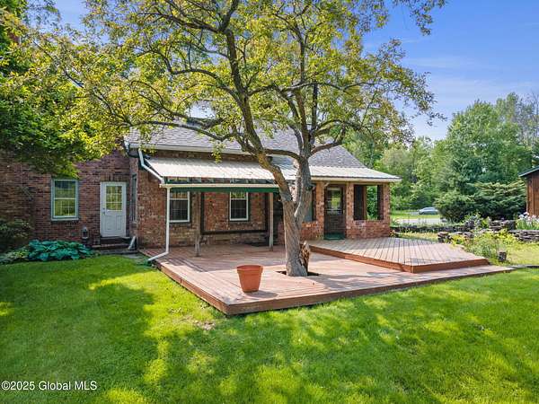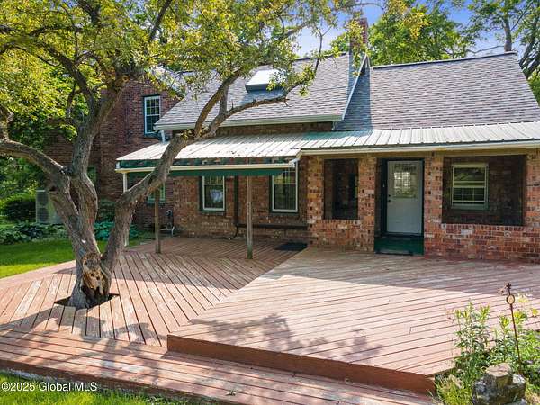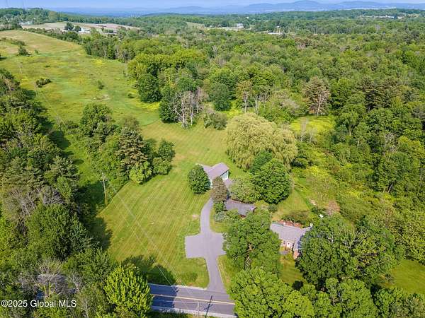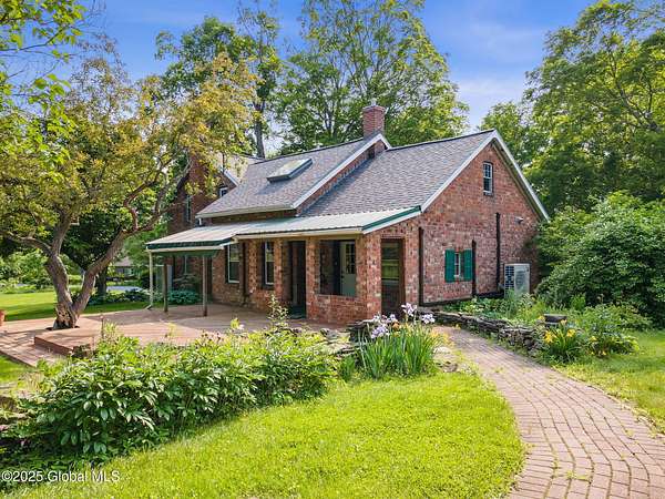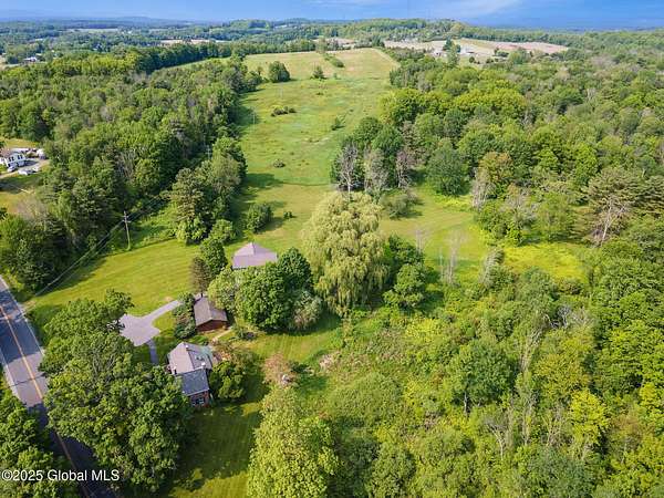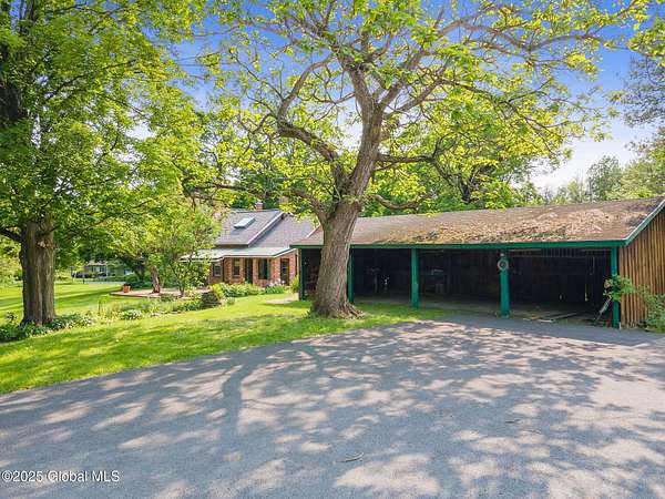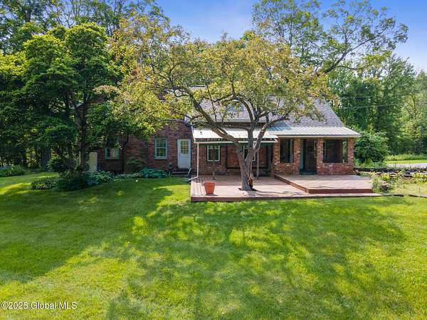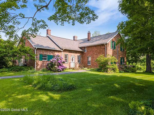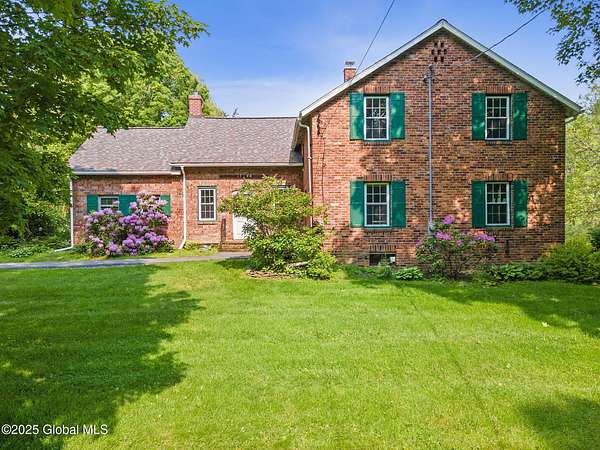 This stately brick colonial offers a rare opportunity to restore and reimagine a home with timeless character. Set on 33+ breathtaking acres of rolling meadows framed by stone walls and garden beds, it features 4 bedrooms, 2 full baths, wide plank wood floors, and 2 fireplaces with wood stove inserts. A 1st floor bedroom and full bath add flexibility. With thoughtful updates and care, this home can truly shine. There is a 4 car garage with finished studio above and large open rear shed that is perfect for storage or horses. Recent improvements include a brand new driveway, updated electrical, new HVAC with mini splits, a 2 year old roof, 12 new windows, newer HVAC with mini splits and all redone electrical. Minutes to Saratoga Lake and steps from White Hollow Farm.