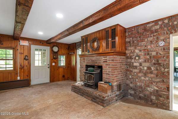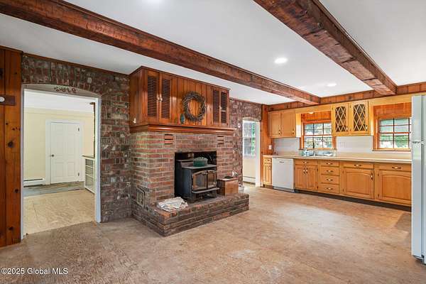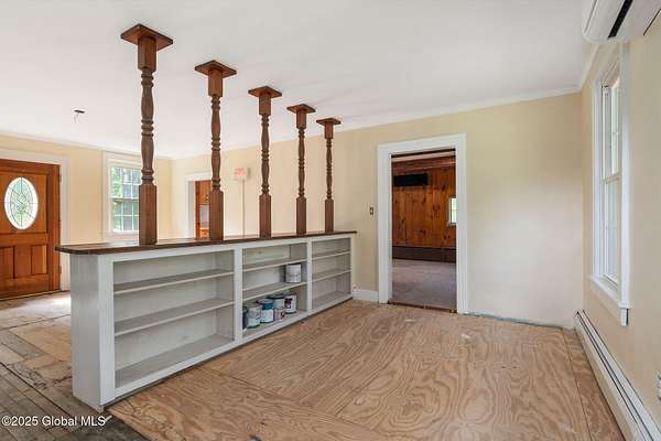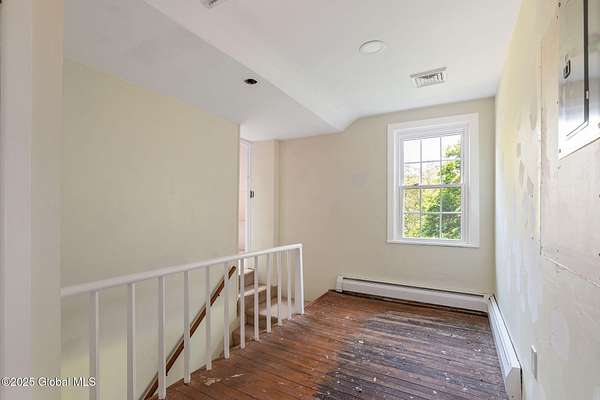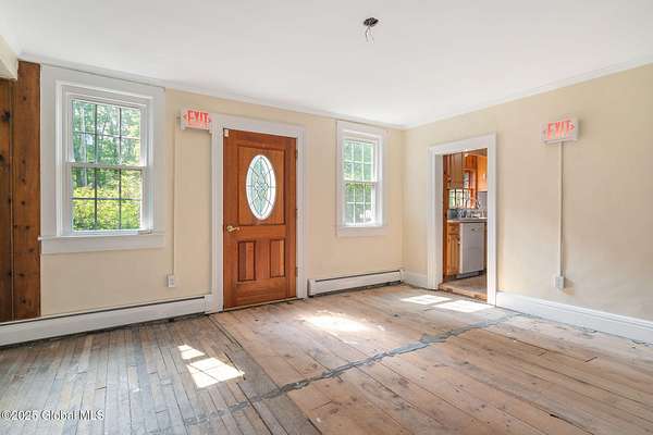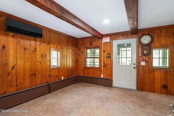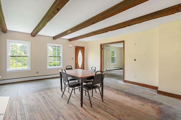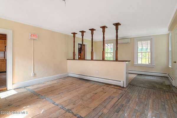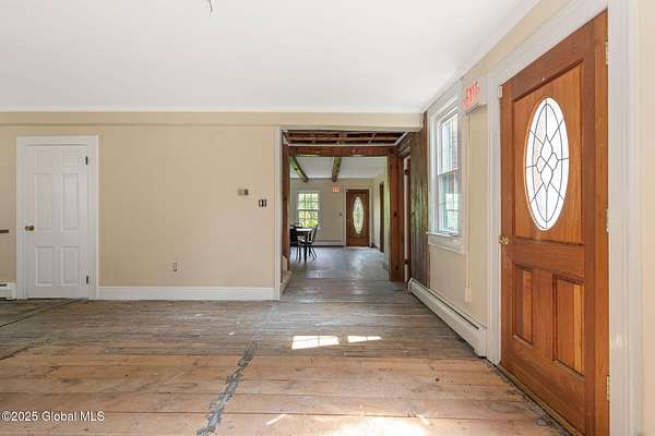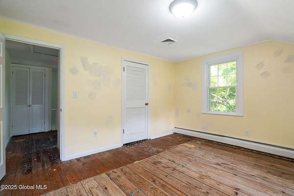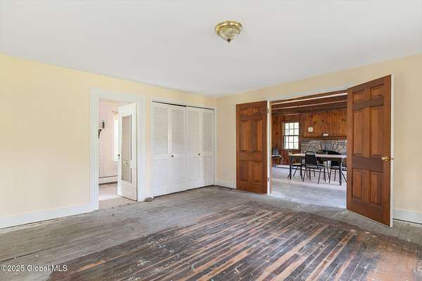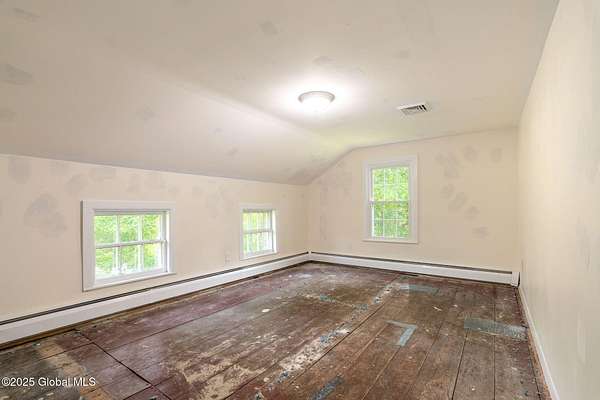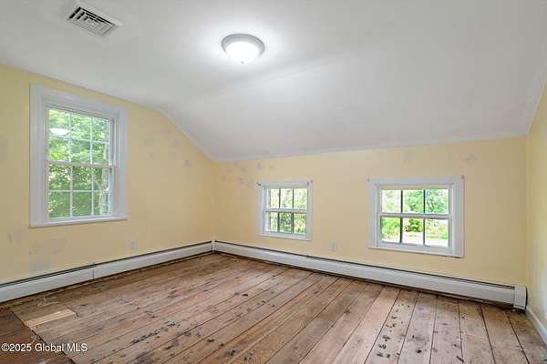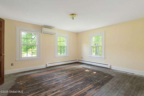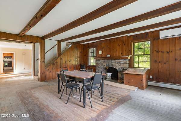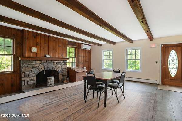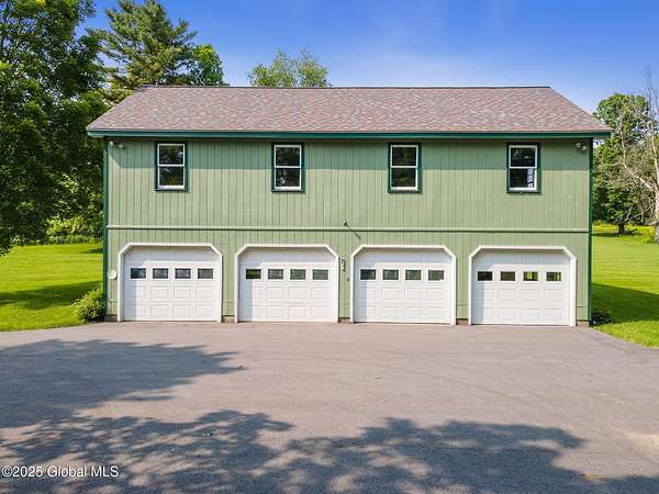 This stately brick colonial offers a rare opportunity to restore and reimagine a home with timeless character. Set on 33+ breathtaking acres of rolling meadows framed by stone walls and garden beds, it features 4 bedrooms, 2 full baths, wide plank wood floors, and 2 fireplaces with wood stove inserts. A 1st floor bedroom and full bath add flexibility. With thoughtful updates and care, this home can truly shine. There is a 4 car garage with finished studio above and large open rear shed that is perfect for storage or horses. Recent improvements include a brand new driveway, updated electrical, new HVAC with mini splits, a 2 year old roof, 12 new windows, newer HVAC with mini splits and all redone electrical. Minutes to Saratoga Lake and steps from White Hollow Farm.