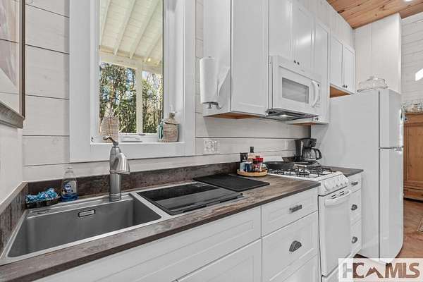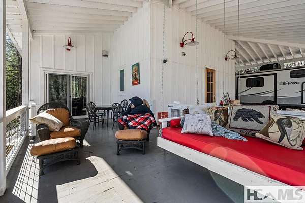 Cross creek Absolutely unique cottage is easy care and stretches out for family or guests, located in a gated Community but has no HOA requirements, only access amenity. Sitting on over 2 acres, with mountain feel and has a usable back and side yard for kids and pets. Relax beside the noisy water of Hedden Creek or hike the pristine area. The cottage is bright and airy, with main and upstairs primary bedrooms, each with baths. Upstairs has an overflow loft for reading or guests. Spacious Living room that has walls of glass, high efficiency mini splits for heat and air, and access to an expansive covered wrap around porch, complete with swing beds to have cool afternoon naps and enjoy the breeze. Custom cooks' kitchen to have snacks or feasts! Large carport has an RV hookup, Septic is sized for 3 bedrooms. There is an additional storage shed on the property. Generator will cover any power outages to keep you from roughing it.
