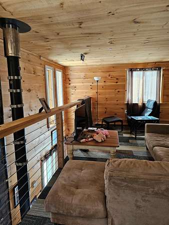 Charming Off-Grid Cabin with Lake Rights Near Swinging Bridge Reservoir Tucked away at the end of a quiet country road, this charming 1,000 sq. ft. cabin offers the perfect blend of privacy, rustic charm, and outdoor adventure. With lake rights to the stunning Swinging Bridge Reservoir-Sullivan County's largest motorboat lake-this property is a rare find for those seeking peace, nature, and the chance to finish a dream retreat to their taste. Set on 2.43 acres, the cabin features pine interior walls, a cozy spiral staircase, and an open loft with tranquil forest views. The warm cherry wood kitchen cabinets are paired with sleek granite countertops, and the home is heated by a propane forced hot air system. A drilled well is in place, awaiting connection, and electric service is installed with final inspection to be completed by the new owner. This property will be sold as-is, as the Certificate of Occupancy was never completed-an excellent opportunity for the right buyer to finish and customize. The home is situated on a concrete slab foundation and is ideal for off-grid living or as a serene weekend retreat. Across the quiet, deeded right-of-way dirt road lies a second parcel-1.9 acres-perfect for a future garage, barn, or boat storage with the reservoir just moments away. Please note: the road has limited maintenance in winter, making this an ideal setting for buyers seeking seclusion, a connection to nature, and year-round or seasonal off-grid potential. Located just 90 miles from NYC and minutes to Bethel Woods Center for the Arts, this is your chance to own a slice of Catskills charm-priced to sell and ready for its next chapter. CASH-ONLY BUYERS, BEING SOLD AS IS.