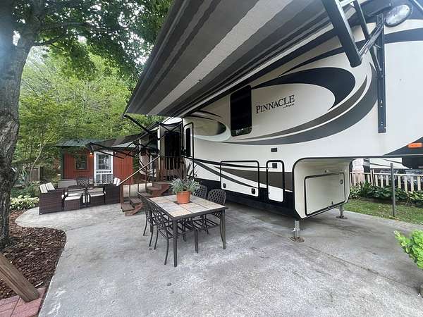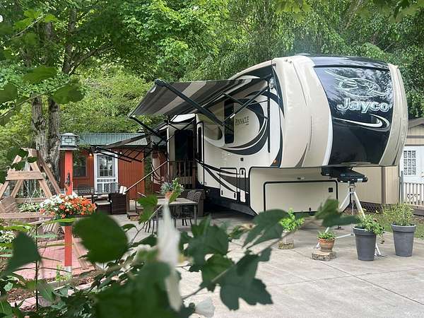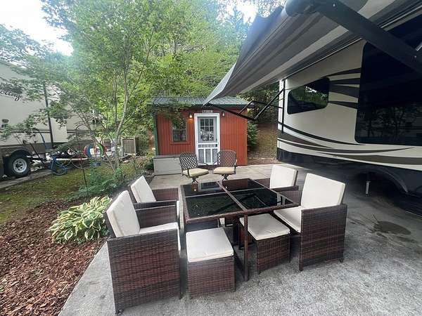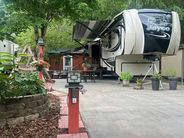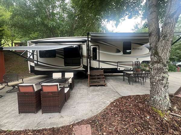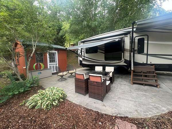 Escape to the North Georgia Mountains! Located in the desirable Choestoe Falls R.V. Park, this beautifully maintained lot comes complete with a 2016 Jayco Pinnacle fifth-wheel RV--offering the perfect retreat for weekend getaways or extended stays in the scenic beauty of Blairsville, Georgia. Enjoy a level, landscaped lot with concrete parking, ideal for outdoor entertaining or relaxing. The park features paved roads, and a welcoming community atmosphere with amenities such as a pavilion, laundry facilities, and picnic area. The 2016 Jayco Pinnacle offers luxury on wheels with a spacious open-concept living area, residential-style kitchen, fireplace, washer/dryer, and king-size bed. Thoughtfully designed with high-end finishes and plenty of storage, it's the perfect blend of comfort and convenience. Lot includes storage building, picnic table and swing. HOA Fees Include: water, sewer, high speed internet, lawn maintenance, pavilion with laundry/bathrooms, security cameras, short hiking trail. Just minutes from Vogel State Park, Brasstown Bald, hiking trails, waterfalls, and Lake Nottely, this is your chance to own a low-maintenance slice of mountain paradise!