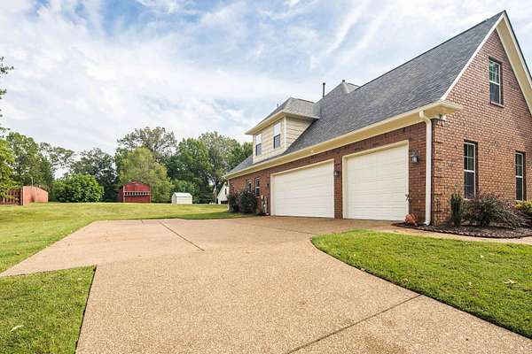 One owner home in Somerville, just minutes from Oakland, one of the fastest growing cities in TN. This home has been well maintained by the original owner and offers a great layout with the primary suite down, two bedrooms up, jack & jill bath and a large bonus room with a closet. The kitchen features granite countertops, double ovens, and the refrigerator remains, along with the washer and dryer. Outside, enjoy a spacious patio with a covered section for rainy days and plenty of room for entertaining. The extra-deep 3-car garage provides space for vehicles, storage, or a workshop. A brand-new roof has just been installed, giving peace of mind for years to come. Situated at the end of a quiet cove with only three homes, it feels like living in the country while still being only a short drive to dining, shopping, and conveniences in Oakland.