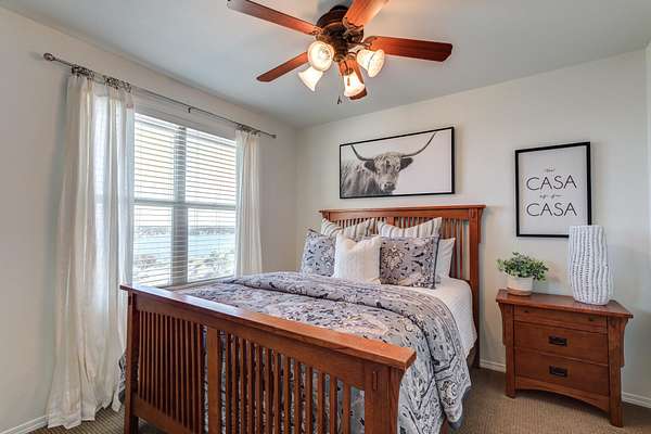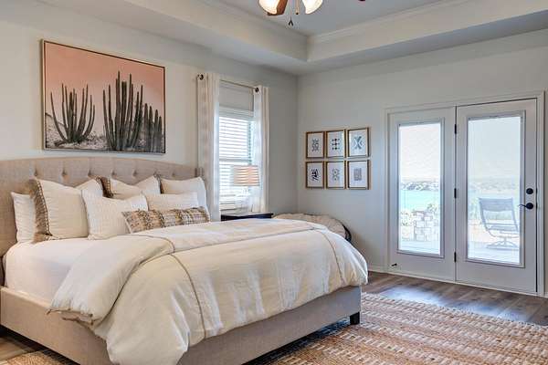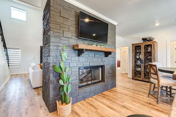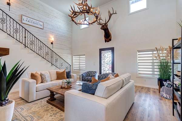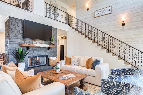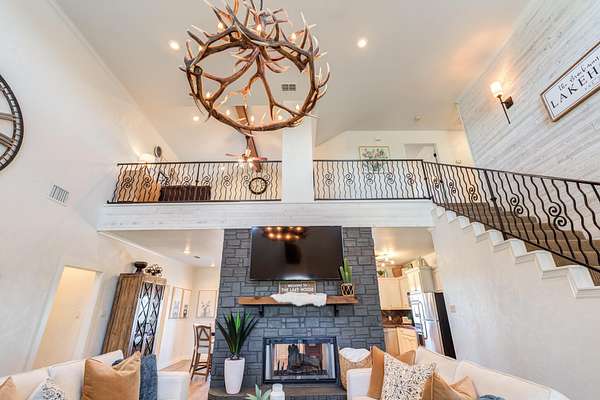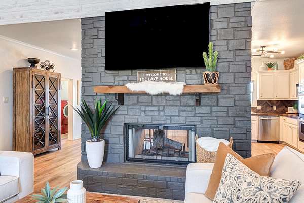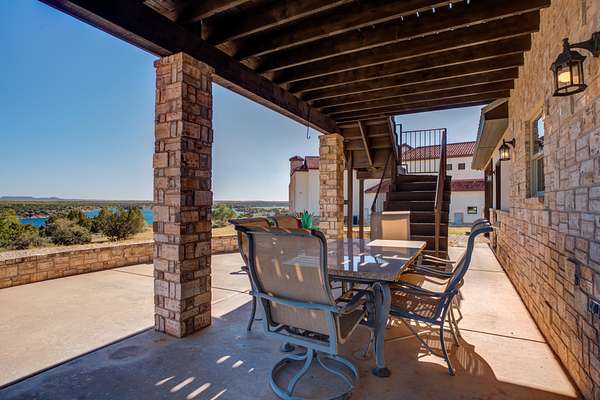 Luxury Waterfront Living in North Ridge on Lake Alan Henry! Experience refined lakeside living in this stunning 3-bedroom, 2.5-bath home with a bonus room and 2-car drive through garage. Situated in a private gated community, this luxurious residence offers elegant design, upscale finishes, and breathtaking lake views from nearly every room. The open, spacious, light-filled layout features a double-sided fireplace connecting the living and dining areas, creating an ideal space for entertaining. The expansive primary suite has double doors to a private patio with its own fireplace-perfect for morning coffee or evening relaxation. Upstairs, two additional bedrooms and a full bath provide ample space for family or guests, along with a versatile bonus room or 2nd living area. With an upstairs covered deck, private dock, panoramic lake views, and fully furnished with high-end, quality furnishings, this home perfectly captures the luxury and serenity of waterfront living! Make your dreams come true today!