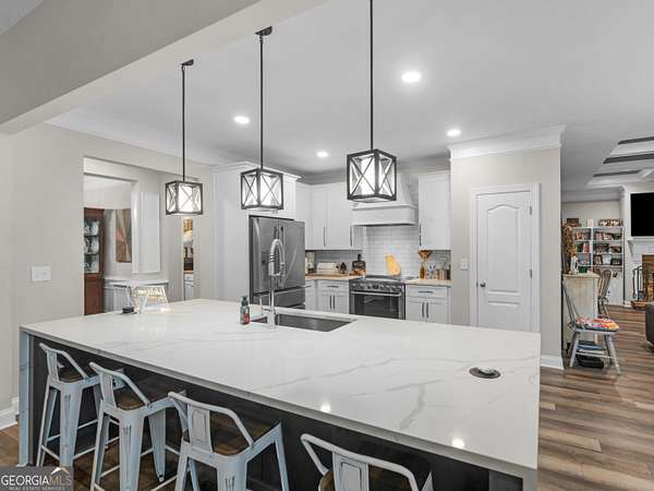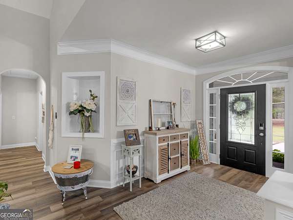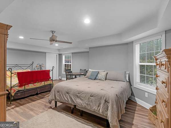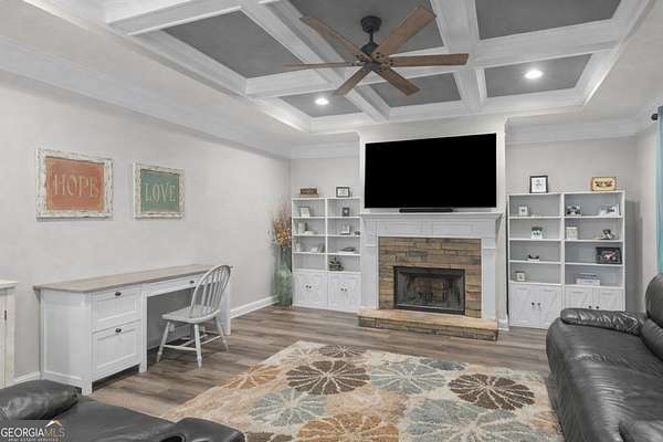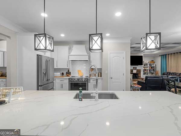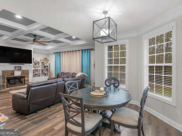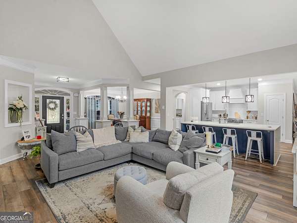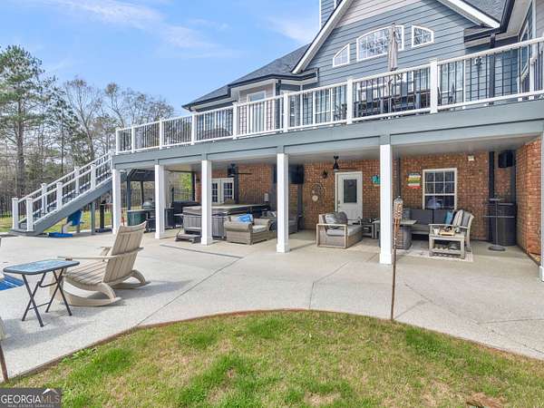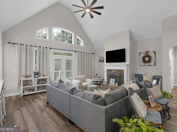 Private Estate Living on 5.73 Acres | No HOA | Resort-Style Backyard Tucked away off the road for ultimate privacy, this stunning Craftsman-style estate sits on 5.73 acres and offers the perfect blend of luxury, comfort, and functionality. Step inside to a beautifully updated, open-concept floor plan featuring fresh interior and exterior paint, exquisite trim work, and soaring vaulted ceilings in the expansive family room with a cozy fireplace. The fully renovated kitchen is a showstopper with a large waterfall quartz island, new appliances, new cabinets, new fixtures & lighting and seamless flow into both the formal dining room and inviting keeping room with coffered ceilings and a second fireplace. The main level features a desirable split-bedroom layout with 4 spacious bedrooms, including a luxurious primary suite complete with a sitting area, shiplap accents, private access to the back deck and pool, and a spa-inspired bath showcasing a two-person shower, whirlpool tub, dual vanities with touch-light mirrors, and separate his-and-her closets. The finished terrace level is ideal for multi-generational living or extended stays, offering a true in-law suite with 2 bedrooms, a full kitchen with granite countertops, ample cabinetry, pantry, full bath, and private living space. Additional lower-level features include a home theater (equipment included), oversized game/exercise room, flex/office space, second laundry hookup, and unfinished storage. Step outside to your own private retreat featuring a saltwater in-ground pool with a new liner and refinished cool deck surface, hot tub, and an expansive Trex deck with under-decking system-perfect for entertaining year-round. Enjoy peaceful acreage views while the kids play on the zipline or climbing wall. Major upgrades include 3 new HVAC units, new roof and gutters, resurfaced driveway, and Trex decking on both front and back porches. Complete with a 2-car side-entry garage. This exceptional property offers the space, privacy, and upgrades you have been waiting for. A rare opportunity to own a private, move-in ready estate with luxury amenities inside and out!