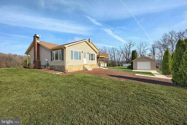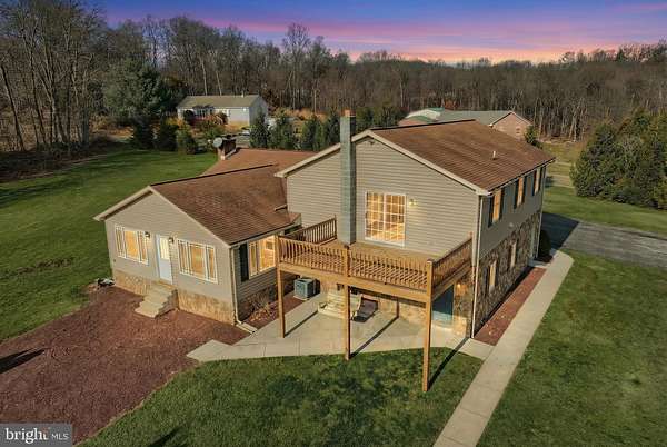 Fabulous Split Level home on just under 2 acres surrounded by trees on a quiet cul-de-sac with 2 additional detached garages and gorgeous finished lower level with brick fireplace! This home really packs a punch for under $400k! Currently 3 bedrooms with the 4th bedroom currently used as a large closet and laundry area, easily converted to 12x9 bedroom, and 2.5 baths. First floor includes cozy living room, dining room, powder room, kitchen with all appliances and huge sun room or first floor family room. Lower level recently remodeled with new LVP, fresh paint, recessed lighting and white washed brick wood burning fireplace. The upper level consists of a primary suite with new LVP flooring, walk in closet, full bath and slider to private deck. The remaining 3 rooms are all good sized and share a full bath off the hall. The covered front porch, rear patio, rear deck and large detached patio with built-in fire pit give you plenty of options for rest, relaxation or entertaining. The almost 2 acre yard is private and the attached oversized 2-car garage, and both single detached garages give you plenty of room for storage or to spread out those weekend projects. The home is situated just a short drive to all major highways and nestled on a quiet cul-de-sac with no traffic. Priced to sell, this home is the best value out there in popular Northeastern schools!