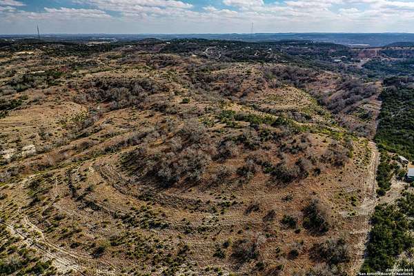 A spectacular property of unparalleled beauty, a unique upscale property a rare large parcel of land located in the exclusive gated community of The Ranch at Vista Real with a lot of privacy and a limited number of 12 lots that cannot be subdivided to preserve the high quality of living. Texas Hill Country at its best with easy access next to I-H10 West at the Welfare exit, minutes from Boerne, La Cantera, The Rim, major business centers, medical facilities and a short ride into downtown San Antonio sports and cultural events. This one-of-a-kind property also benefits from participating in the Texas Agricultural Property Exemption tax savings program. This +/- 106.7 acres property is blessed with a variety of outstanding topography with several potential building locations on top of plateaus, breathtaking miles and miles of unlimited 360-degree views beautiful morning sunrises and evening sunsets, hills, valleys, mature oak trees, native grasses, seasonal spring fed pond. On site electric power at the three water wells sites along with their 3,500-gallon concrete storage tanks next to potential scenic building locations and high fencing surrounding the property.