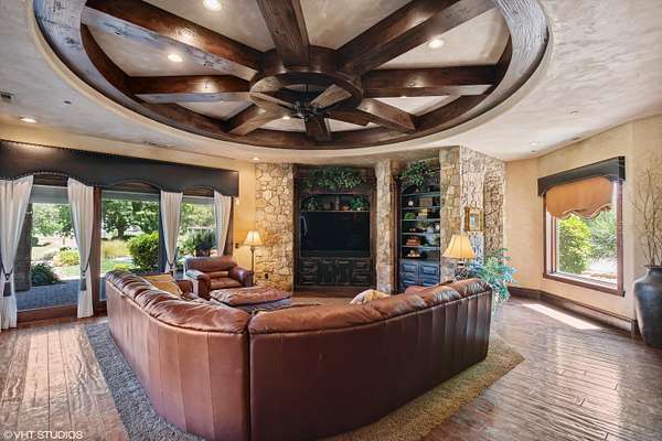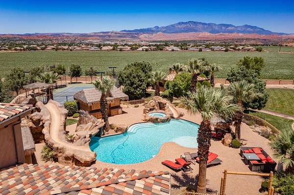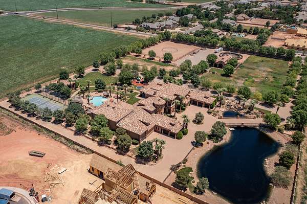 This exclusive 7.31-acre estate offers unmatched privacy with a gated entrance, private bridge, half-acre pond, and abundant parking. The amenities are extraordinary, featuring a 3,600 sq/ft horse barn, pasture, resort-style pool, full sports court, indoor gym, pavilion, and an impressive indoor basketball court. Inside, the smart-home design showcases Control4 automation, solid wood doors, vaulted ceilings, elevator and expansive view windows. Enjoy the 30-seat home theatre, a full sports bar perfect for entertaining, and dedicated spaces for games and gatherings. The luxurious primary suite includes dual closets, a stunning bathtub, and a private deck overlooking the serene property. Enjoy this one-of-a-kind estate crafted for those who truly want it all.