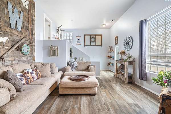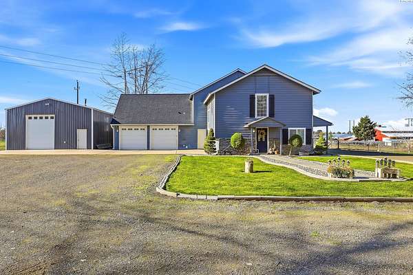 MLS# 281783 You're greeted with country charm as you drive up the tree lined drive to the home. Whether you have animals or a garden to tend to or just love the outdoors, this property has got room. There is more than enough room for toys--boats, RVs, or anything else you need to store. And with a large SHOP for all your projects or storage needs, you'll have plenty of space for whatever your heart desires. Enjoy year-round outdoor living and entertainment with a covered patio featuring both hot tub and BBQ hookups, creating the perfect spot to entertain or unwind after a long day. Located just minutes from amenities, Hood River boat launch and Wildlife reserve for nature enthusiasts, this property offers the ideal combination of quiet country living and convenience. Inside the home, passing through the entry, the kitchen offers tile flooring, and ample cabinetry space and beautiful tile backsplash. Past the kitchen, lies 2 bedrooms separated by a full bathroom. The second level features the first living room, while the third boasts the primary suite, a bonus room, and additional living space. Lat but not least, the fourth bedroom is located in the lower basement. This home is perfect for MULTI-GENERATIONAL LIVING! Pause and experience the natural beauty that this 1.5-acre country property offers; open space, quiet surroundings, and endless potential. This property is a must-see!
