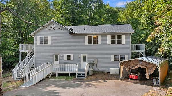Great opportunity in the Burningtown area! This spacious 3BR/3BA home sits on 4.88 unrestricted, usable acres featuring approximately 477' of stocked trout stream frontage (not in a flood plain). The flexible floor plan offers a bonus room, office, formal dining, and two living areas, providing ample space for work and play. While the bones seem solid, it is ready for your creative cosmetic updates to truly make it shine. Recent updates include a new roof in 2023, zoned HVAC units replaced in 2018, and a whole-house generator for peace of mind. Both the interior and the expansive wrap-around decks were freshly painted in August 2025. Enjoy a peaceful, tree-lined drive with paved access right to your door. The property features a carport, storage buildings, and a cleared area at the entrance-perfect for a future shop, barn, or second home. Located just 10 miles from downtown Franklin, this property offers a combination of private creek-side living, functional land, and easy accessibility. Showings start Thursday!