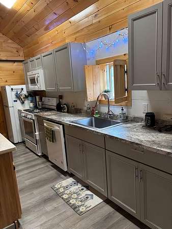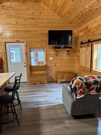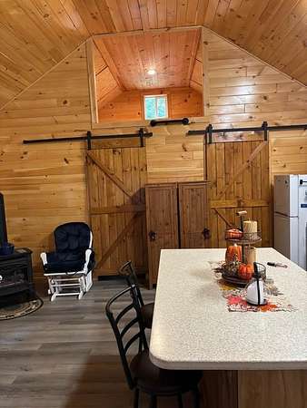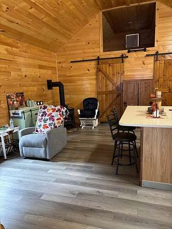 ENJOY COUNTRY LIVING WITH THIS VERSATILE PROPERTY! This charming 1 bedroom, 1 bathroom home, with a gas fireplace was built in 2017, is situated on 6 acres of land and offers endless opportunities for expansion, recreation, or investment. Approximately 50% of the property is open yard space, with the remaining 50% wooded--great for outdoor get togethers, activities, and relaxing. The home features lovely rustic finishes throughout, including knotty pine walls, barn-style sliding doors, and custom window coverings that add warmth and character. You will enjoy having options on where you would like to relax, either inside by the gas fireplace or outside on the covered porch or next to a bon fire. You will also see a detached 24 x 30 two-stall garage with an open loft above, plus an attached 24 x 30 concrete pad, ideal for additional garage space, a lean-to, or extra storage. The property also features a 24 x 74 concrete pad equipped with water, sewer, and electric hookups, making it ready for a second home, double-wide, or trailer. Utilities are already in place with two main power feeds--one serving the existing home and the other supplying the garage and large concrete pad. A dug well provides excellent water flow to the home and can easily be reconnected to serve the additional pad. Other highlights include a large wraparound driveway and a relaxing rural setting just 5 minutes from Colton and 15 minutes from Canton or Potsdam, for your convenience. The property is also close to the Adirondack Park, ATV/Snowmobile trials, Higley Flow and quite a few other great reservoirs for boating, kayaking, fishing and swimming. There are also mountains not far from this property if you're into hiking. As well as some great local restaurants for your dining pleasure! Schedule your showing soon and make this property your new oasis!