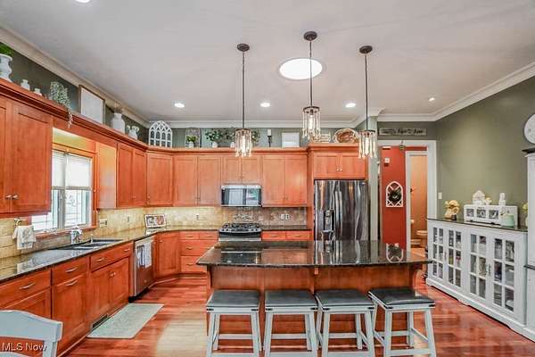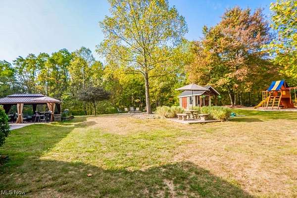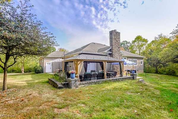 Set back on nearly 13 wooded acres, this custom built home delivers the privacy and space you've been looking for! A long drive leads to a beautiful retreat where quality craftsmanship is easy to see, with room for both everyday living and entertaining. The living room centers around a fireplace and opens to the eat in kitchen with granite countertops, tile backsplash, stainless steel appliances, and Schrock cabinetry plus plenty of dining space. Just off the main living area, a library with built in bookcases and hardwood floors creates a quiet spot to read or work. Down the hall, three bedrooms and two full baths include the master suite with a sitting room, large walk in closet, and a private bath with separate vanities, a garden tub, and step in shower. The secondary bedrooms share a Jack and Jill bath with twin vanities. A main floor laundry with washer and dryer included, along with a guest bath, add even more convenience. Upstairs, a recently finished space gives you the option of a fourth bedroom or bonus room with its own full bath. The walk out lower level expands your living area with a spacious rec room, home gym, workshop, and another full bath, all set on a 13 course basement. Extra highlights include 8' doors throughout, a heated 3 car attached garage, 400 amp electrical service, and a back up generator. The space to entertain continues outside with a paver patio, gazebo, fire pit, new swing set, and shed for storage. A negotiable hot tub and detached garage add to the appeal, making this private retreat one you won't want to miss. Schedule your showing to see all this home has to offer today!