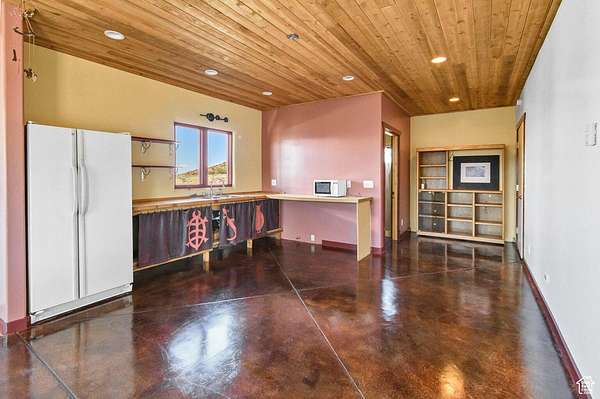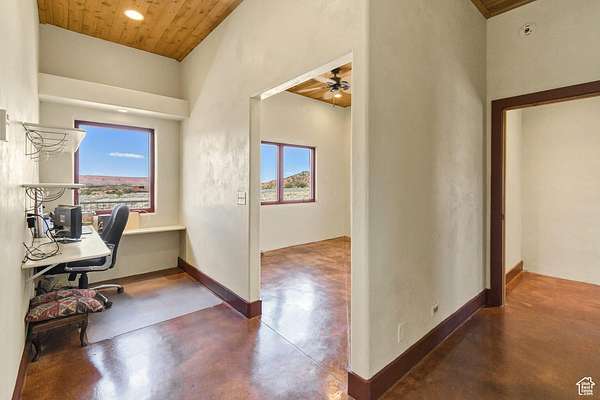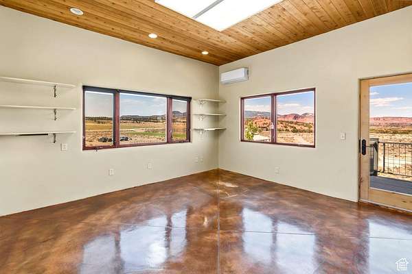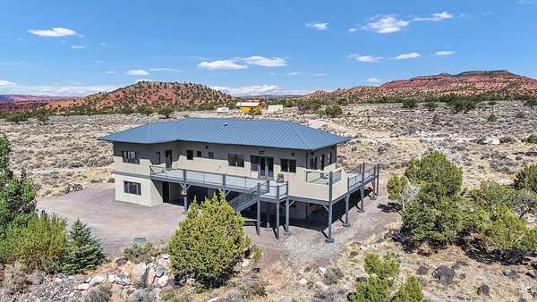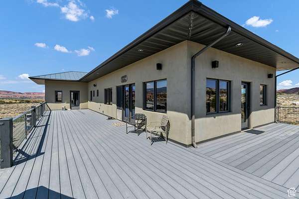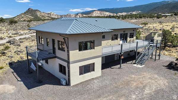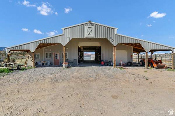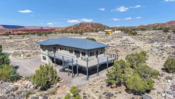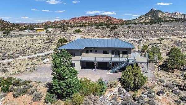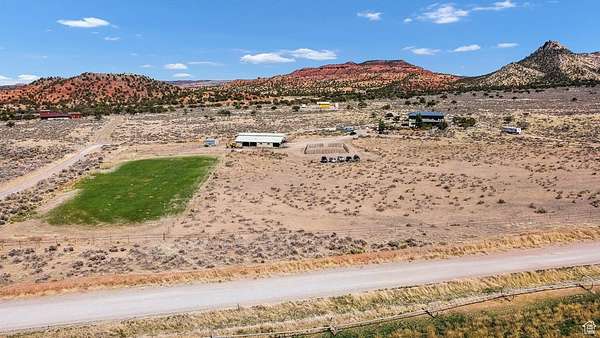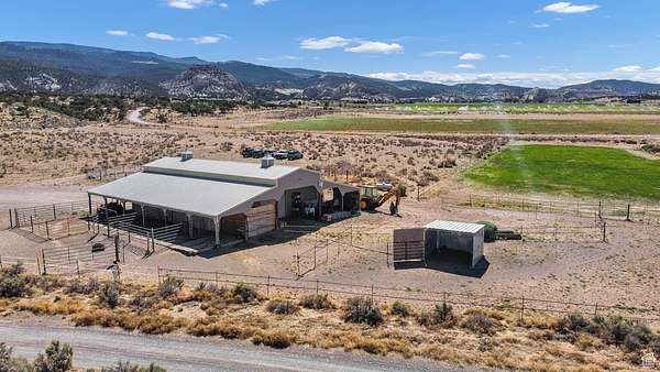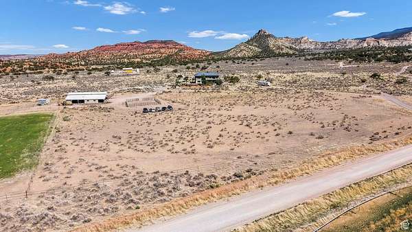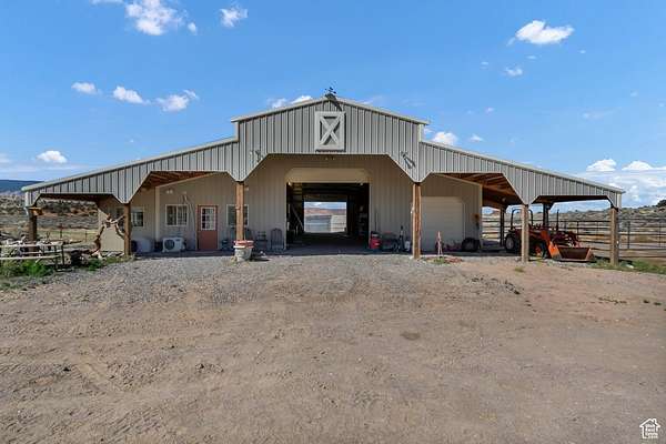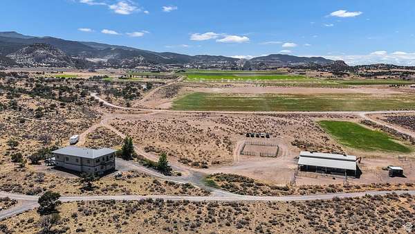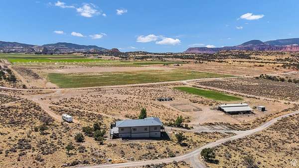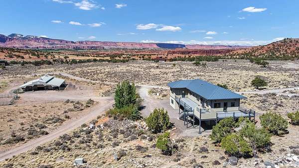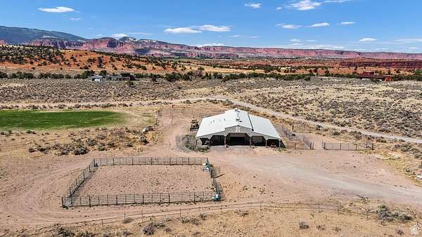 Experience the beauty of Central Utah like never before on this incredible horse property nestled in the heart of Teasdale. Surrounded by striking red rock vistas, this one-of-a-kind estate sits on 10 acres and offers panoramic views from every angle, along with a lifestyle of peace, privacy, and unmatched natural beauty. The residence features 3 bedrooms, 4.5 bathrooms, and seamless indoor-outdoor living, highlighted by a wraparound deck that showcases the surrounding landscape and picturesque views. Step directly from the primary suite or main living area to enjoy serene mornings and unforgettable sunsets. Equipped for both comfort and self-sufficiency, the home includes geothermal heating, a propane-powered backup generator, and an oversized 1,058 sq. ft. garage with a workshop featuring 50 AMP power. Equestrian enthusiasts will appreciate the lush green pasture and 3,600 sq. ft. barn, which includes three indoor stalls and four outdoor stalls. One stall is equipped with overhead radiant heat for the horses. All horse panels are included with the property. A 612 sq. ft. guest house with a kitchen offers comfortable accommodations for a ranch manager or overnight guests. The property includes two septic systems. There is also a dedicated RV concrete pad with 30 AMP power hookups. With two irrigation water shares, a private well, no CC&Rs, and no HOA, this property offers the freedom and flexibility rarely found in the area. Whether you're seeking a full-time residence, second home, or legacy ranch, this is a rare opportunity to own a slice of paradise that blends functionality, privacy, and breathtaking surroundings.