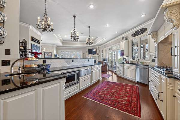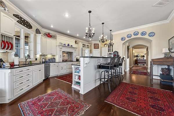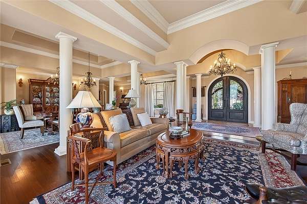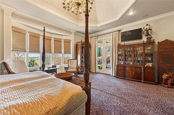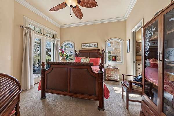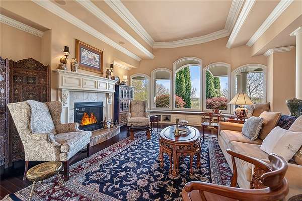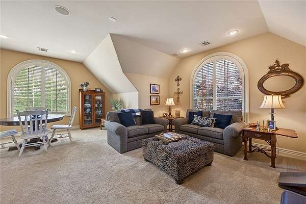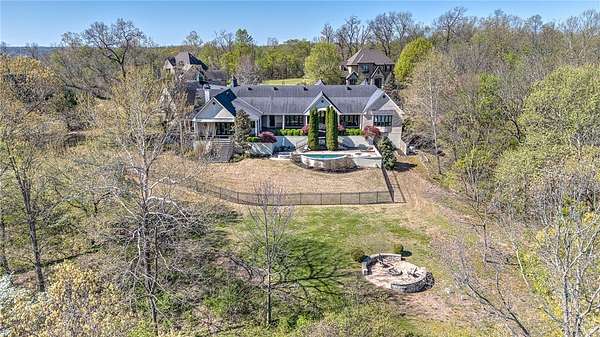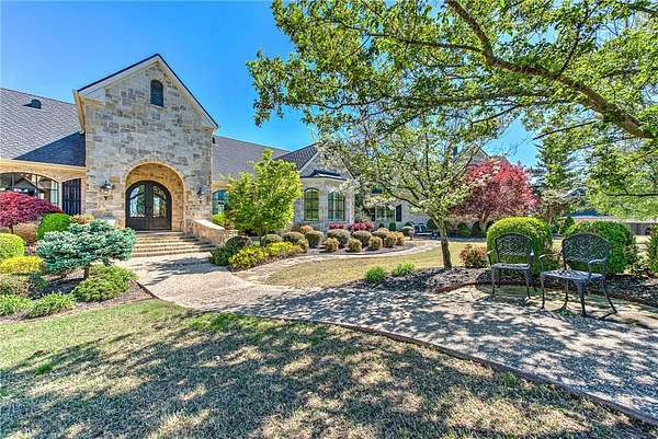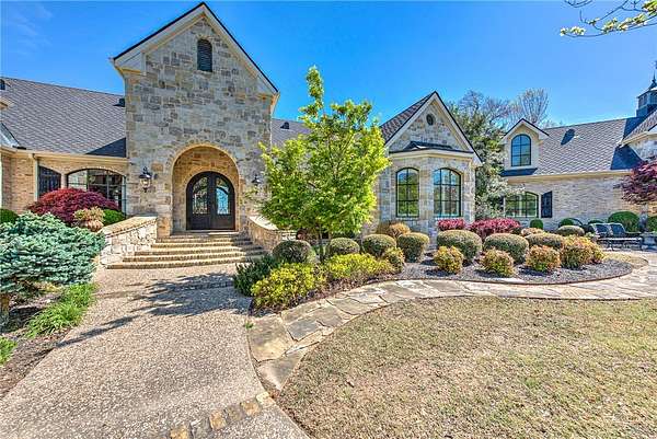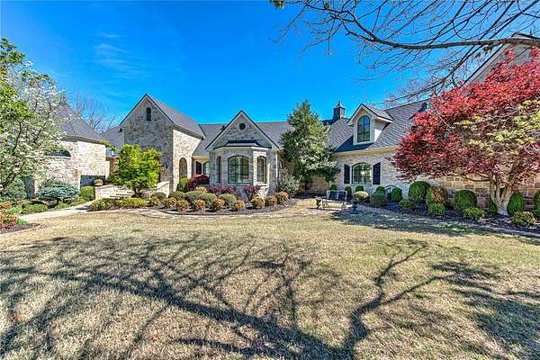 Welcome to an extraordinary French Country estate where luxury, privacy, and breathtaking views come together on 2.3 acres in the gated Beau Chalet community-just minutes from XNA. This award-winning 5,468 sq ft masterpiece, designed by Boyce McQuay and built by Seven Pillars Contracting, makes a lasting impression from the moment you step through its grand iron entry. Inside, you'll find three stunning living areas, a veranda-access dining room perfect for entertaining, a private executive office with fireplace, and a chef-inspired kitchen. With 4 bedrooms, 4.5 baths, and a private storm shelter, comfort meets peace of mind. Upstairs offers a spacious bonus room, bedroom, full bath, and storage. Step outside to your own private retreat-featuring wraparound covered patios, a resort-style pool with waterfalls, lush landscaping, and a custom fire pit for unforgettable evenings. A Parade of Homes Award winner, this one-of-a-kind residence captures timeless elegance and elevated living in every detail.