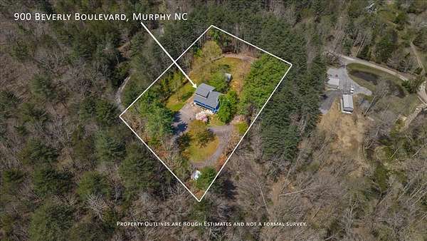 From Murphy, Take Hwy 64 to NC 60 S. Travel 3.9 miles and turn right onto Shady Grove Road. Go approx. 0.3 miles and turn left onto Culberson Road. Turn right to stay on Culberson road, then turn left onto Beverly Blvd. Go approximately 0.8 miles to 900 Beverly Blvd. Sign on property.