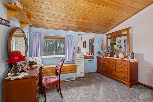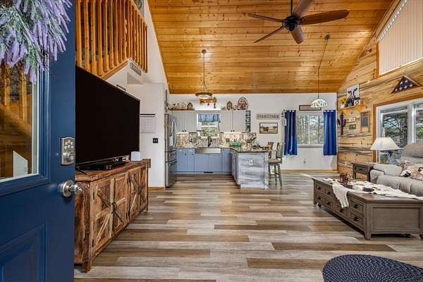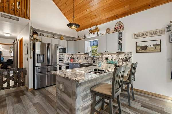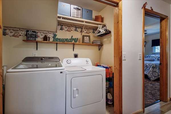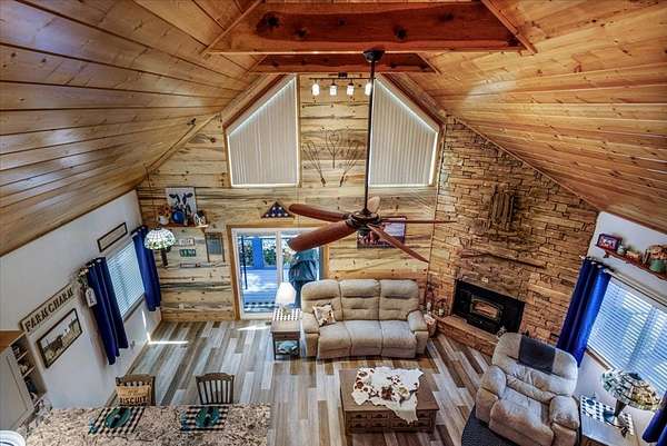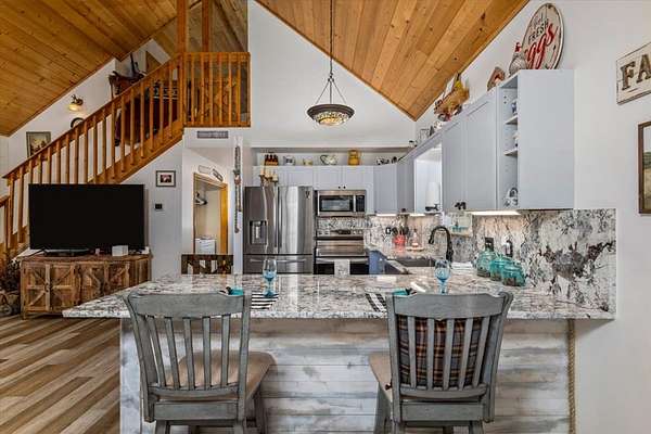 - Ceiling Fan(s), Furnished, Granite Counters, Insulation, Laundry On Main, Pantry, Smoke Detector, Solid Surface Counters, Vaulted Ceiling(s), Washer/Dryer Connection, Window Treatments, Wood Ceiling(s)