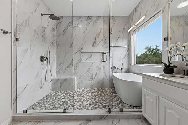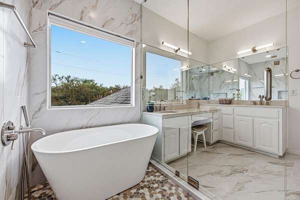 Welcome to 900 Canyonwood Drive - your private Hill Country retreat situated on a sprawling, flat 2.76-acre lot that offers endless possibilities for outdoor living, entertaining, and relaxation. This beautifully updated 1994-built executive home spans approximately 3,734 square feet and features five bedrooms, three and a half bathrooms, an additional office/bedroom, and a separate den, providing generous space for family, guests, and everyday comfort. Step inside to discover a fresh, move-in-ready interior with new paint throughout that creates a bright and welcoming atmosphere. Recent major updates bring modern convenience and lasting peace of mind, including a brand-new septic system, a new well pump, a recent roof replacement, and a striking new iron front door. The newly renovated owner's bath stands out as a true highlight, complete with a stunning, spa-like shower that invites you to unwind in luxury after a long day. Inside, you'll enjoy thoughtful features such as three living areas, a wood-paneled office, and a gourmet kitchen boasting granite countertops and a wet bar - perfect for casual family meals or impressive entertaining. Outside, the appeal only grows with a sparkling in-ground pool ideal for cooling off on warm Texas days or hosting unforgettable gatherings. A three-car garage offers ample space for vehicles, storage, or hobbies, while the expansive, level lot gives you room to roam, garden, or simply savor the serene country setting with a voluntary HOA that has limited restrictions. Located in desirable Dripping Springs, this property masterfully combines peaceful acreage living with convenient access to acclaimed schools, world-class wineries, breweries, and endless outdoor adventures. Whether you're dreaming of a vibrant family homestead or a secluded private escape, 900 Canyonwood Drive delivers turnkey comfort and timeless appeal. Don't miss this rare opportunity to own a slice of Dripping Springs paradise!
