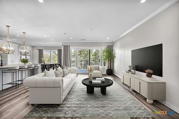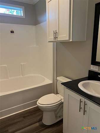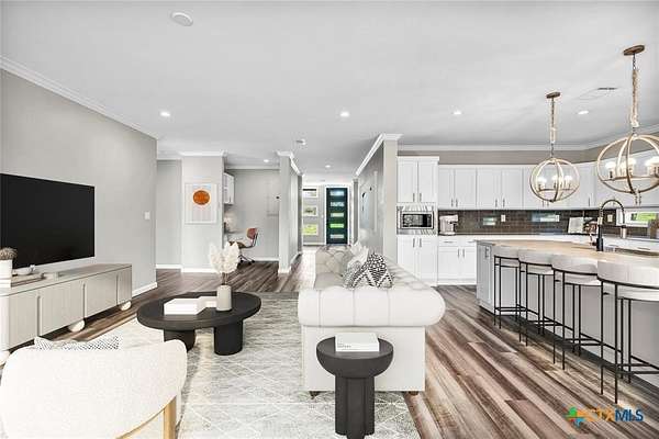 Tucked away on a beautiful 2+ acre lot filled with mature trees and backing to a peaceful creek, this modern-style home offers a rare mix of privacy, design, and convenience just minutes from Austin. From the moment you pull into the attached garage or extra parking pad, you'll notice the clean lines and elevated aesthetic that set this property apart. Inside, the open layout is bright and spacious, featuring a designer kitchen with a large center island, generous living spaces, and big closets throughout the home. The owner's suite feels like a true getaway with its spa-inspired bathroom and calming views of the natural landscape. Step outside to enjoy the expansive yard, plenty of room to grow, and the quiet creekside setting that makes this home feel like your own private retreat.