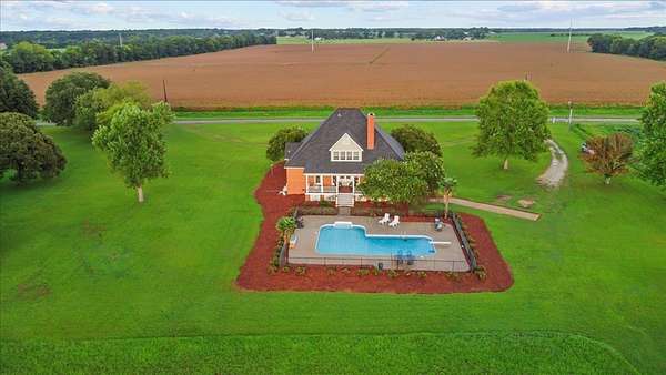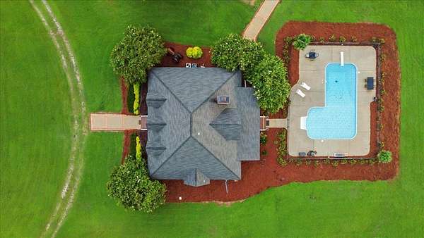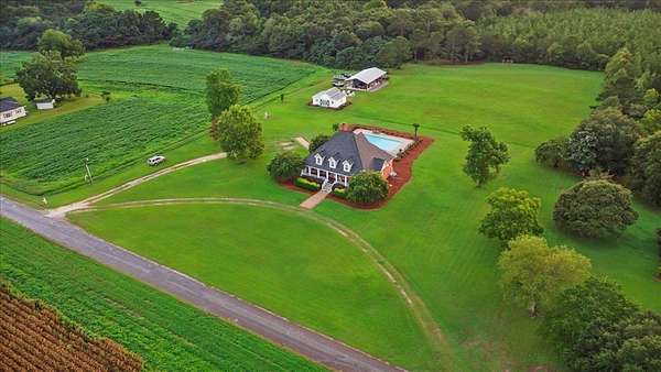 Quiet country setting on 5 acres with chlorine pool w/ NEW LINER , party barn 30x24 fully insulated w/ electricity and heated and cooled w/ a mini split, 5 BAY Pole Barn w/ electricity. Master down w/ large bathroom and walk in closet. 2 bedrms upstairs w/ jack and jill bath and large den/sitting area w. surround sound and office space. WRAP Around storage space on second level.. Bonded w/ Terminex. NEW ROOF. Two HVACS inside units aprox 5 years and outside units refurbished. ( documentation available) CRAWL space recently totally encapsulated(warranty transfers to new owner with 4 years of free service with Alabama Foundation Services. New dishwasher. HARDWOOD FLOORING .CSPIRE in process of being installed. .TWO brand new hot water heaters. Kitchen refrig (brand new) . WELL WATER and SEPTIC but City water available.POTENTIAL multifamily property. Home currently under HOME WARRANTY with AHS. Owner will extend for buyer. Also 2.5 acres is mowed for hay by the neighbor.
