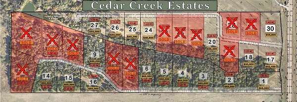 Exit I-35 at Hwy 33. E on Hwy 33 for 1.10 miles. on N side of Hwy 33. Add is Cedar Creek Estates. Use W entrance lot is #2 on the E side of the road Google Maps=Cedar Creek Estates as your search