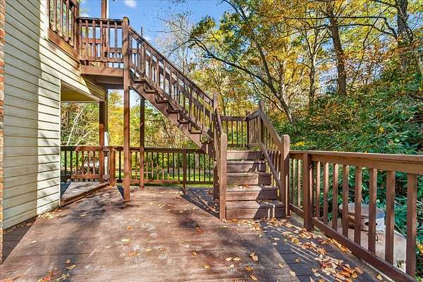 Tucked away at the end of the road on 2.11 private acres bordering a 1,500-acre portion the Jefferson National Forest, this fully renovated 3BR/2BA (with 4BR functionality) home offers the perfect blend of modern comfort, natural beauty, and historic, rustic charm. Highlights of the property include: privacy; serene setting, and a running stream along one side of the property. Miles of marked hiking trails of the National Forest just outside your front door. A detached, oversized 2-bay garage with epoxy floors and wired with electric. Lots to love about this updated home including: open floor plan; beautiful kitchen with butcher-block countertops, added island, new soft-close cabinets, new stainless appliances (including large french-door refrigerator and gourmet double-door electric range with 5-burner top); new flooring throughout; updated bathrooms; freshly painted; spacious, owner's suite upstairs with cathedral ceilings and access to 2nd story, covered balcony overlooking the property; new metal roof; and newly-connected high-speed internet/wifi. Home has a flex room that can serve as an office, playroom, or guest space. Outside features a spacious deck overlooking a serene stream, plus two-story covered porch creating the ideal setting for relaxation or entertaining. Beside the home, you'll find a versatile, stone-foundation outbuilding perfect as a wine cellar, canning space, or storage for all your outdoor adventures. Plus, outbuilding has separate room that could be finished and used for office, 'she shed', 'man cave', etc. Despite its private, wooded setting, the property is only 6 miles from I-81, offering convenient access and proximity to quaint and desirable town of Marion while still feeling like a true mountain retreat. In addition to bordering the National Forest, the Appalachian Trail, Grayson Highlands State Park, Mount Rogers National Recreation area and Hungry Mother State Park are all nearby. Some photos have been virtually staged to potential.