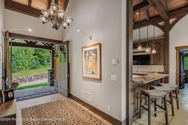 RIVERFRONT elegance and elevated craftsmanship are paired with an enchanting setting at this ''one of a kind'' timber frame home located within walking distance of the charming historic village of Redstone, Colorado - The Ruby of the Rockies! 350 feet of pristine Crystal River frontage winds along the 3 plus acres of tranquility upon which this sophisticated home is situated. Step inside to a spacious layout featuring 4 bedrooms and 4 baths and designed with luxury in mind. This true timber frame build by award winning Canadian Timberframes Ltd. exudes warmth and luxury, while expansive windows frame breathtaking river and landscape vistas that include Three Sisters' Waterfall, Mount Sopris, and sweeping aspen and evergreen forests that stretch up to the dramatic red cliff surround. Embrace the active lifestyle of Rocky Mountain Living. Fly fish, hike, bicycle, or horseback ride from the property and be gone for the day...or take a more leisurely approach and appreciate abundant wildlife viewing as you stroll along the Crystal River into Redstone to enjoy the restaurants, shops, and galleries that intermix with the charming cottages that speak to the lively history of this quaint village. 20 Minutes to lively Carbondale and less than an hour from the world class skiing and cultural events of Aspen, Colorado. Be sure to bring the animals! A large fenced corral for the horses and an amazing dog wash makes for easy living for you and your pets. Some extra special touches include the gourmet kitchen with Wolf range, hood, and warming drawer and SubZero fridge/freezer, accompanying butler's pantry, luxurious primary bath with jetted tub and foot bath, Living room gas fireplace with extensive rock chimney, chic high tech lighting, family room wood- burning fireplace, downstairs kitchenette complete with drawer fridge/freezer and convection microwave, State of the art heating and AC, dining deck, view deck, large river side patio, heated oversized garage with 2 separate workshop rooms and wired for installation of 30 amp EV charger, custom interior and exterior masonry with natural stone, heavy gauge standing seam roof, buried 400 amp electrical service, professional landscaping and irrigation, and more. This property provides an unparalleled living experience unique for the Crystal Valley.