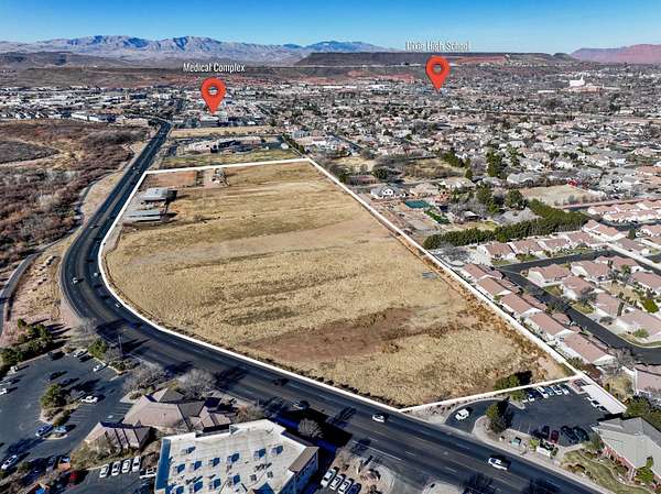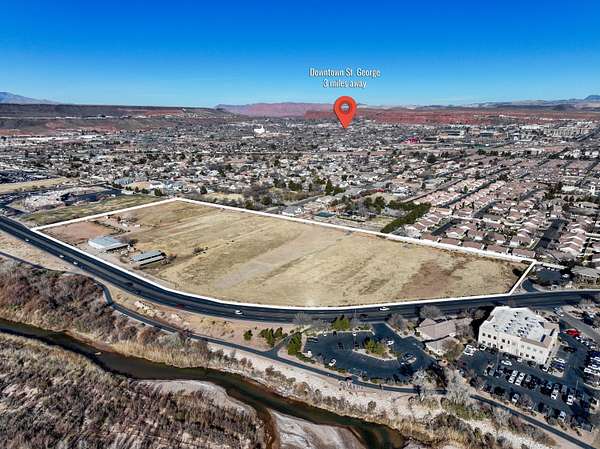 Est $148,248/moPrime Commercial Land located on Riverside Drive, in the heart of St. George. Centrally located on Riverside Drive, Between Bluff Street and River Road. Close to Dixie Medical Center and other prime commercial businesses. Potential usage includes: Medical, Office, Retail, Restaurant, Residential. Across from Virgin River and walking path with high visibility and premium frontage on Riverside Drive. 18.69 acres, water rights negotiable. Call Brent Keenan for question or more information.