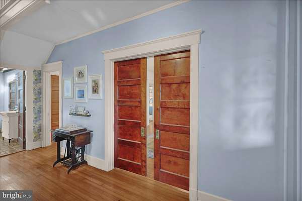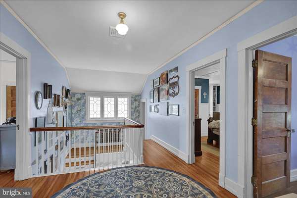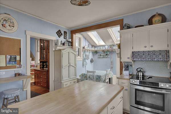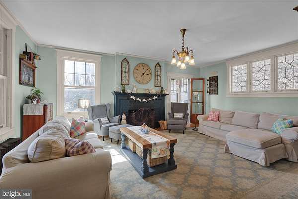 Welcome through stately stone pillars and along a picturesque brick-paved driveway to this exceptional four-bedroom, two-story home set on 6 private acres in Lower Alsace Township within the Antietam School District. Offering breathtaking views and ultimate privacy, this one-of-a-kind property seamlessly blends timeless character with thoughtful modern updates. Distinctive features include a detached stone carriage house with loft, exposed beams, skylights, hardwood flooring, dual staircases, pocket doors, leaded glass accents, and beautifully refinished floors throughout. The main level welcomes you with an inviting foyer that flows into a formal living room complete with a gas fireplace and elegant crown molding. A spacious formal dining room is ideal for entertaining, while the updated kitchen features a seated island and refinished countertops, opening to a charming breakfast area filled with natural light from overhead skylights. A bright and airy sunroom, along with a full bath featuring exposed beams and skylights, completes the first floor. Upstairs, you'll find four generously sized bedrooms and an updated full bath. The primary suite offers a versatile bonus room, perfect for a private office, sitting area, or dressing space. The unfinished basement provides ample room for a home gym, laundry, and additional storage. Outdoors, the expansive 6-acre property is predominantly wooded, offering privacy, scenic beauty, and even a tree stand for outdoor enthusiasts. Relax and take in the peaceful surroundings from the large covered front porch. This truly special property offers a rare combination of privacy, character, and setting-schedule your private showing today to experience it for yourself.