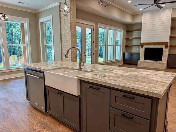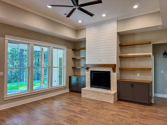 - Breakfast Bar, Ceiling Fans, Crown Molding, Entrance Foyer, Fireplace, Granite Counters, High Ceilings, Kitchen Family Room Combo, Loft, Pantry, Programmable Thermostat