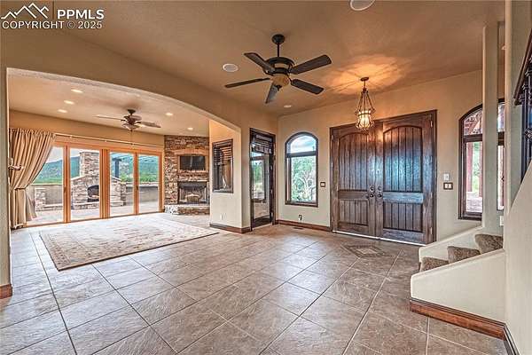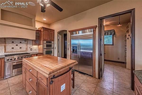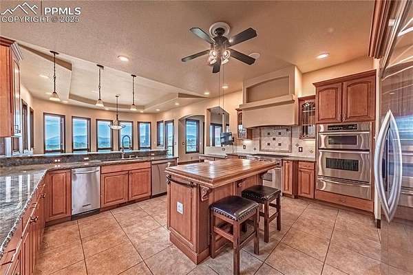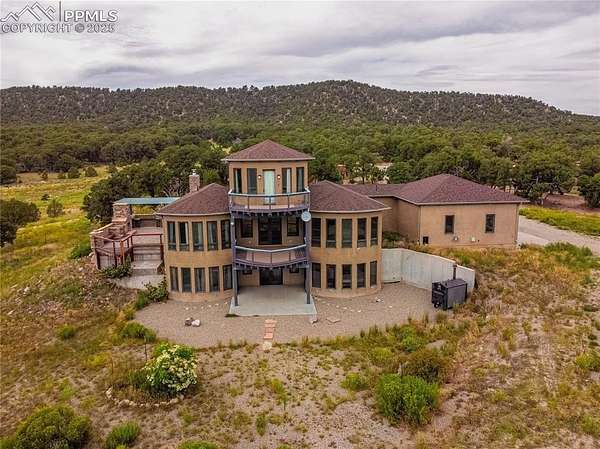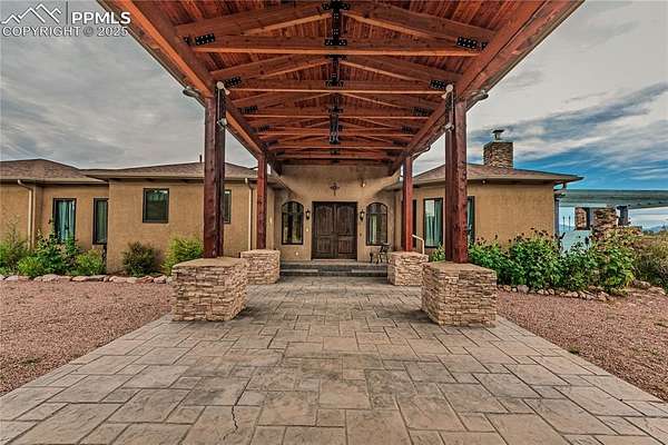 A meticulously crafted home with luxury, open-concept design functionality, smart home efficiency, and privacy and comfort and elegance. Features gourmet kitchen with breakfast bar, a kitchen island, modern stainless-steel appliances, marble countertops. adjoining huge family dining room with mountain view. Behind the kitchen is a butler's pantry, laundry area, and pet walk-in tub/shower. Its expansive design boasts custom craftsmanship throughout, its tall ceiling, natural lights from countless European windows and doors, unlimited water supply (three 2000 gals cisterns, community well tap). Upper level primary suite has unparalleled views with a walk out to its own deck. Each suite room is equipped with master bedroom amenities from a walk-out to its own deck or patio or walk-in closet to master bath with ceiling shower. Basement has the family room, another room can be converted to a theater/entertainment room, the large mechanical room has a storage space. The two BR Suites in the basement have walkouts to the large patio, easy access backyard, shop, walking trails, and to a huge outside barbecue oven. The main level suite has a walk-out to main level deck with an obstructed view of the mountains. The main level living room has a walk to a large patio w/ updated gazebo, a wood-burning fireplace. A horse-shoe driveway leads you a portico entryway over stamped concrete. As you entered the main huge double slab door main entry it opens to a generous foyer with marble-tiled floor and tall ceiling. Added Features: 50 x 60 ft (3000 SF) Steel by Armstrong Steel with 12 windows, 14 ft of head room shop ground level, 3 lift Master Roll up doors, 100,000 lbs car lift, and 1,500 gals Water Cistern. House has 5 System Storage and 5 pumps. Tw 11,000gals storage, two 1,250 gal cistern near the house, 500 gal Transfer Cistern in the meadow, a 1,250 Gal back up near the house. 500 Propane tank dedicated to Steel bldg, 1000 gals prop gas for the house. And so much more.