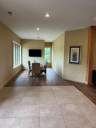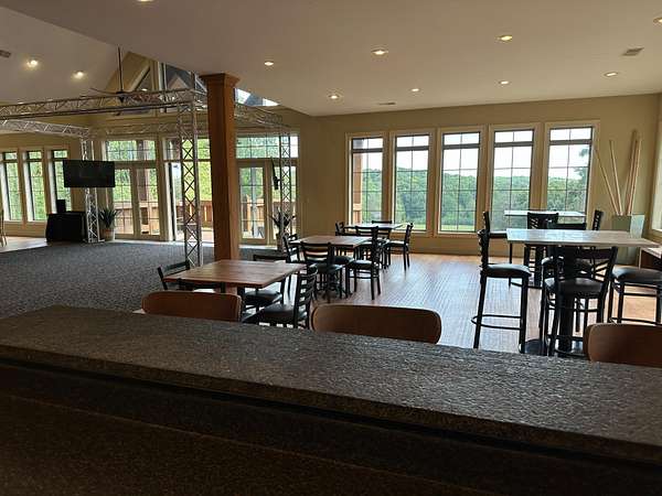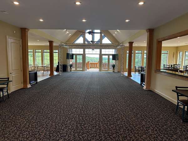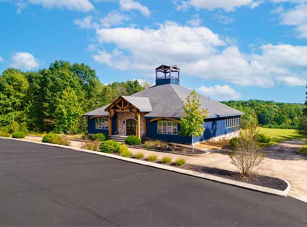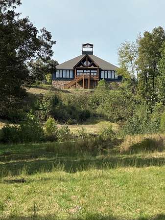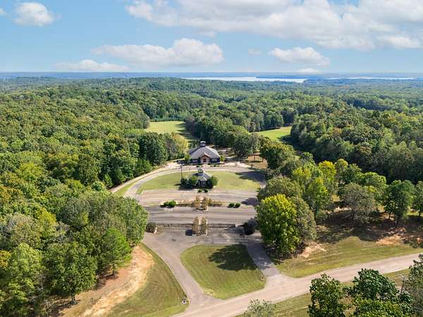 A winding drive leads to the impressive centerpiece of the property, a 6,000+/- square-foot clubhouse majestically positioned, featuring floor-to-ceiling windows flooding the interior with natural light, plus showcasing million-dollar panoramic views of the surrounding landscape and nearby Kentucky Lake. The warm wood flooring, two well-appointed bathrooms, and open layout make this an ideal setting for a private residence, wedding and event venue, or weekend retreat.