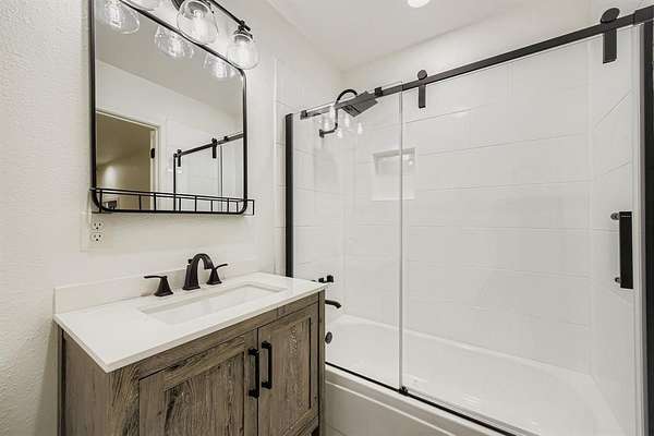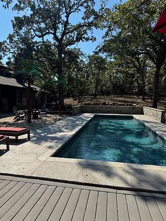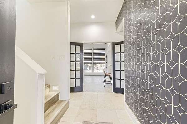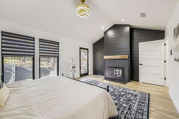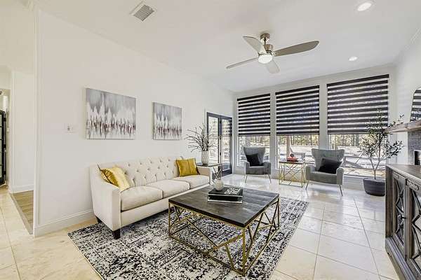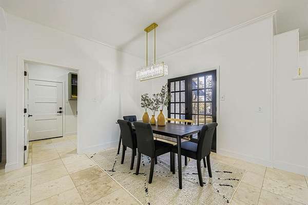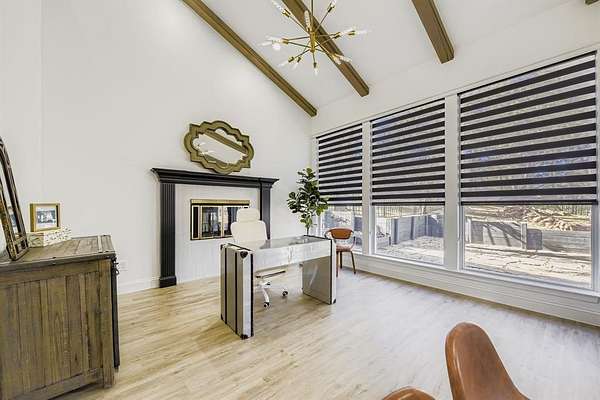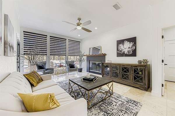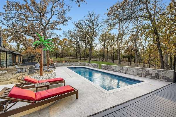 Newly renovated modern contemporary home situated on nearly two acres in Argyle ISD, offering exceptional privacy, peace, and quiet. A long driveway leads to this thoughtfully redesigned residence, featuring brushed gold-toned finishes, clean lines, and a striking see-through fireplace connecting the dining room with wet bar to the master bedroom, creating a unique and elegant focal point. Abundant natural light fills the home, enhancing its modern aesthetic and connection to the outdoors. French doors open to a charming outdoor breakfast nook, perfect for enjoying morning coffee while surrounded by serene natural views. The expansive, tranquil setting provides a rare opportunity to enjoy refined contemporary living with the space and seclusion of acreage.
