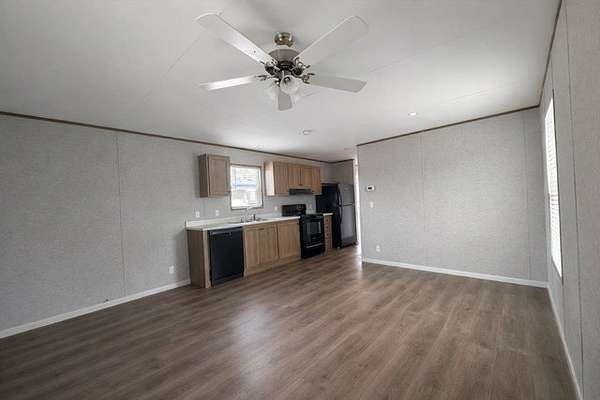 2025 Champion Homes singlewide one-bedroom, one-bath located just minutes from Toledo Bend Lake. Everything is brand new, offering low-maintenance living and modern comfort in a compact, efficient design. 36' x 16' with open living area with ceiling fans, a full kitchen complete with dishwasher, range, and refrigerator, and a glass storm door leading to a covered front porch—perfect for relaxing after a day on the lake. .Brand-new HVAC system and a newly installed aerobic septic system. Situated on 0.672 unrestricted acres, this home offers excellent flexibility—ideal for Airbnb or VRBO use, a weekend getaway, or a full-time residence near the water. Additional home (same model) located on adjacent lot is also available for income producing investment opportunity.