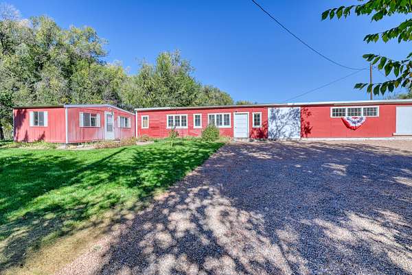Nestled on over 21 picturesque acres, this captivating estate features a charming white farmhouse, 3 spring-fed ponds, and sweeping views of the Front Range and Pikes Peak. Fully renovated with fresh paint, new carpet, tile, and many other upgrades. The nearly 4,000-square-foot home includes 4 bedrooms, 3.5 baths, and a new oversized 2-car garage. The primary suite spans the western wing, offering unobstructed mountain views. The spacious eat-in kitchen has custom cabinetry and opens to a large covered deck overlooking two of the ponds, a favorite spot for local wildlife. Original hardwood floors, wainscoting, and atrium doors add timeless elegance to the formal dining room. The expansive living room features a wood-burning fireplace with marble surround and flows seamlessly into a west-facing garden room, where vintage farmhouse windows frame stunning natural scenery. A highlight of the home is the 500 sf recreation room--ideal for a pool table and shuffleboard--with a nearby ¾ bath and large walk-in shower. The basement offers a spacious room with laundry chute, washer, dryer, freezer, and 3 additional rooms. A fenced 'play yard'--complete with concrete shelters--can house chickens and peacocks. Check out this horse program for kids and get paid by the State of Colorado: Caesacademy.org. Stretching 100 feet, a row of barns includes a tack room, several workshops, a 900 sf garage and an adjacent 20' x 30' office. The property runs on a private well while connected to city sewer, and the largest pond irrigates the landscaped yard and pastures--ideal for agricultural use. There are four pastures, fully fenced. Mature trees throughout the grounds have been professionally trimmed. Additional recent improvements include new roofs on all structures, fresh sod, a new sprinkler system, updated hot water heater, furnace, and electrical panel. Be sure to check out the drone video!