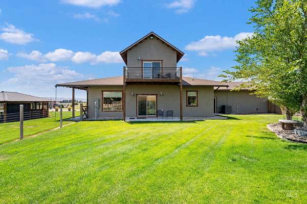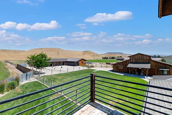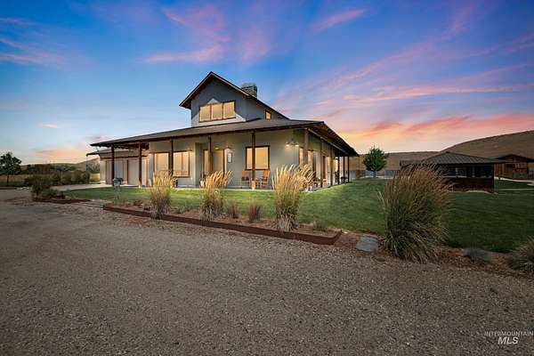 IMPROVED PRICE! Immaculate Equestrian Estate on 10 Acres - 900 Robin Lane, Emmett, ID Enjoy peaceful country living with this beautifully designed, move-in-ready horse property, with 5 of the 10 acres irrigated and 4 being hayfields. Property is adjacent to private cattle ranch which backs to BLM so lots of open space to view The custom home, built by Irish Quality Builders, features a main-level primary suite, upper level second suite, extended 2-car garage, whole-house water filtration, and stunning outdoor spaces including a wraparound porch, second-floor balcony, and screened BBQ patio room. Equestrian amenities include a 36'x56' barn with RV-height garage, office, and shop, plus a shedrow barn with 3 stalls, feed & tack rooms, breezeway, exercise studio, auto waterers/feeders, and a 76'x124' irrigated arena. Fenced pastures, paddocks, garden shed, raised beds, and mature landscaping complete this rare offering. You will be stunned by the pristine condition and how well thought out every detail is. DON'T MISS THIS!