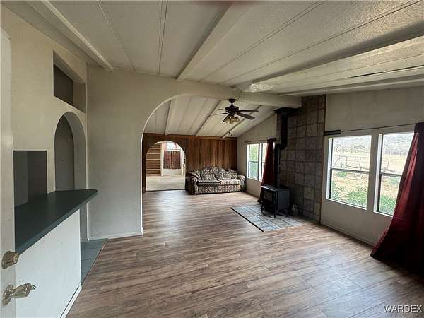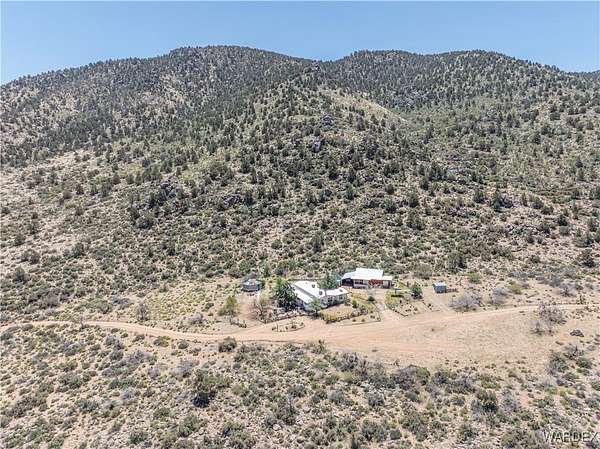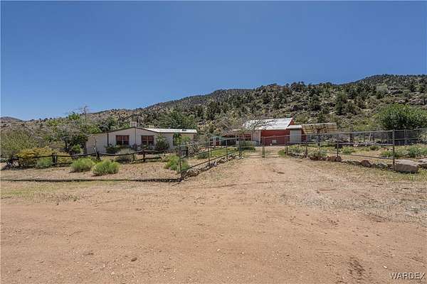 Welcome to the idyllic subdivision of Vock Canyon Ranches, located approximately 15 miles north of Kingman in the scenic Cerbat Mountains. This secluded canyon home offers three bedrooms and two baths with a wood fireplace in the living room and solar panels providing power to the property adding the perfect blend of rural living and convenience, with easy access to amenities. Perfect agricultural property for horses and other animals. This property spans 37 acres of land, providing ample space for your dream home and outdoor activities. Enjoy picturesque granite mountain views and undisturbed natural desert terrain, creating a tranquil and private oasis. The parcel abuts federal land to the west, ensuring unobstructed views and a sense of vastness. Ideal for Building: The expansive land offers endless possibilities with plenty of room for gardens, workshops, or recreational areas. Wake up to breathtaking views of the Cerbat Mountains and surrounding desert landscape, offering a peaceful retreat from city life. Explore hiking trails, wildlife sightings, and stargazing opportunities right on your property, embracing the beauty of nature. Experience the charm of rural living while still being within reach of Kingman's amenities, including shopping, dining, and entertainment options. Enjoy the privacy and serenity of living in a secluded canyon, away from the hustle and bustle of city living. Extremely motivated seller and wants to see all offers. NEW ROOF INSTALLED APRIL 2025. Power is nearby within 1.1 mile including Fiber Optic.