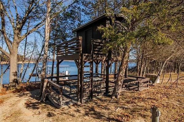 A rare opportunity on Beaver Lake in coveted Ventris Point, this custom-crafted home blends timeless design with thoughtful engineering. Set on over 3 acres in one of the lake's most protected deep-water coves, the property offers privacy, durability, and exceptional lake access. Vaulted ceilings, granite counters, energy-efficient features, abundant storage create a home designed for comfort and function. Private dock features oversized 30x32 slips with lifts, two swim platforms, sea anchored--ideal for year-round enjoyment. Multiple garages (attached and detached) provide five total bays plus bonus rooms, perfect for hobbies, guests, or future expansion, also treehouse and another storage building by water. Recent improvements include new roofs, gutters, HVAC, generator, dock upgrades, and extensive system updates. Landscaped, wooded, and gated, with paved access and private utilities, this is a true legacy lake home--engineered to last, designed to live in, and positioned for unforgettable Beaver Lake living!