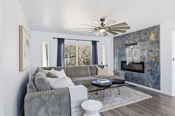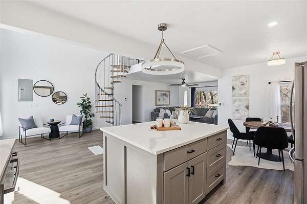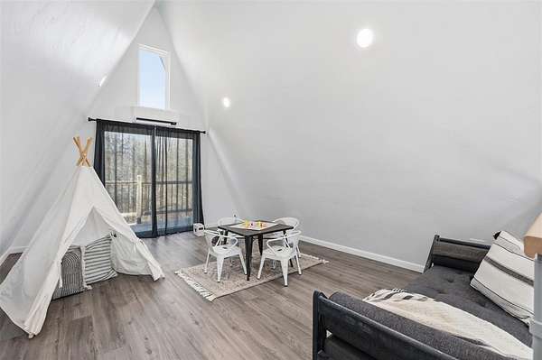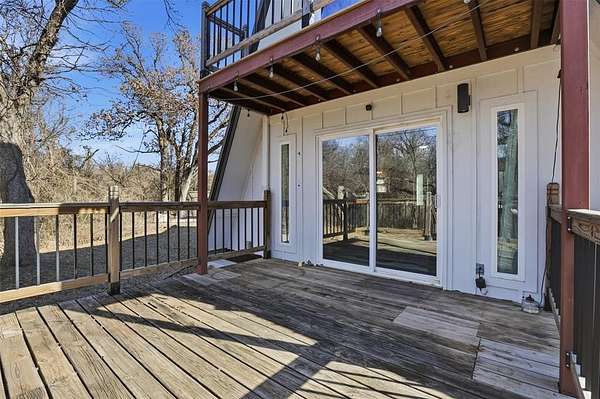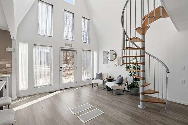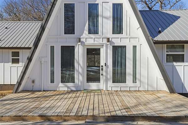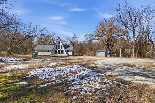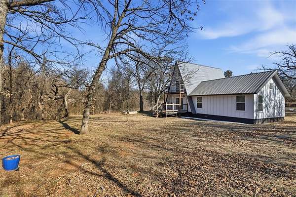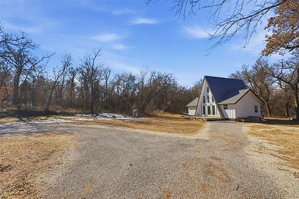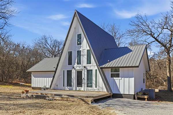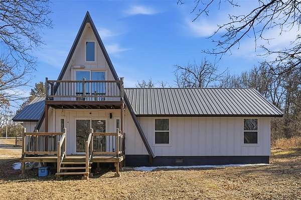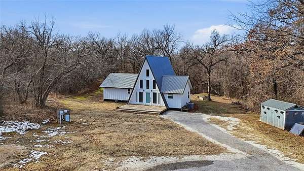Welcome to your own seven-acre retreat just outside of Edmond-where quiet country living meets endless possibility. Tucked along a peaceful road, this private, tree-filled property offers a lifestyle surrounded by nature, wildlife, and the gentle bend of a creek, all centered around a freshly remodeled A-frame home full of charm and comfort. Inside, the two-bedroom, one-bath layout is bright and inviting, with soaring two-story windows that flood the space with natural light. A striking spiral staircase leads to a loft with a lookout balcony, creating a perfect spot for reading, working, or simply taking in the views. The brand-new kitchen is both timeless and functional, featuring classic shaker cabinetry, an oversized island with quartz countertops, and stainless steel appliances. Major systems have been thoughtfully updated, including a new HVAC system, metal roof and hot water system-providing peace of mind for years to come. Outside, oversized new decks on both the front and back extend your living space into the outdoors. Whether you dream of exploring your land, starting a garden, raising chickens, or simply enjoying the quiet beauty of nature, this one-of-a-kind property is ready to support whatever your heart desires.