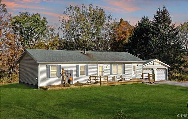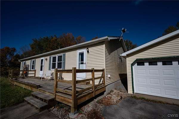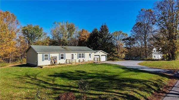 Welcome to 9001 Summit Road, Cassville. NY, a manufactured home, built in 1988 with a large two stall detached garage. This ranch home features single level living with a well designed layout, encompassing 1398 square feet of comfortable space. Featuring 3 bedrooms and two full baths, this home has a superb floor plan offering a spacious, bright, and airy atmosphere. A lovely living area with a country view and a large eat in kitchen and dining makes it easy to entertain like a pro in the heart of the home. Inside, you will appreciate newer flooring throughout the home and an abundance of natural light from the many windows bringing the view of the outside directly to you on the inside. A partially finished basement adds a tremendous amount of bonus space to this home! Standard Insulating installed a new hot water heater in 2021 along with insulating the home. Sliding glass doors lead to an expansive back deck. A new front deck and cellar door recently added as well. Nestled on a generous 1.80 acre lot in the Sauquoit Valley Central School District, this property provides a peaceful and private setting in the country but only a 15 minute drive to New Hartford, making access to wonderful restaurants, shopping, and medical facilities . Experience the beauty of the four seasons in this remarkable location. Don't miss this opportunity to make this home your very own. 5g from Verizon is available at this address. Schedule a viewing today and make your dreams come true.