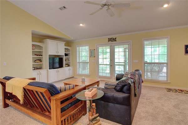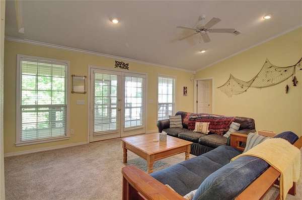 Discover the ultimate lakefront retreat on 3.76 private acres, complete with a two-slip private boat dock and multiple decks perfect for entertaining or relaxing with beautiful lake views. This 3-bedroom, 2.5-bathroom home offers an open-concept design that seamlessly connects the kitchen, living, and dining areas--ideal for gatherings and everyday living. Thoughtfully designed for both comfort and functionality, this property offers incredible privacy and the potential to divide or expand. Wake up to serene water views, spend your days on the water, and unwind on the expansive decks surrounded by nature. Whether you're looking for a personal lakefront sanctuary or an investment with development potential, this rare gem has it all.