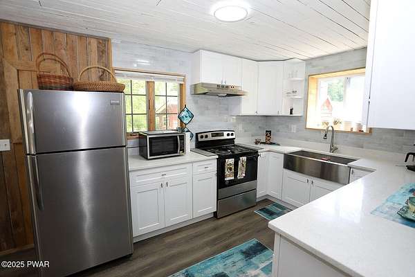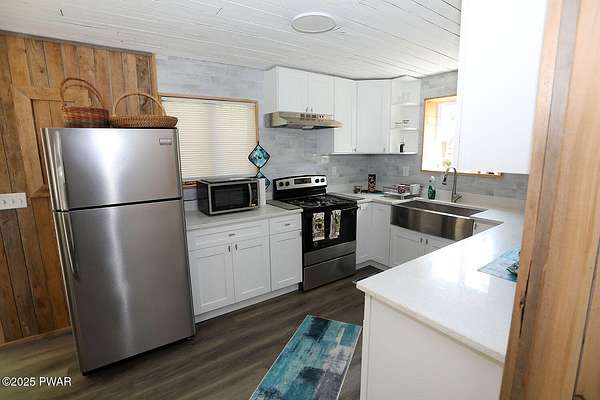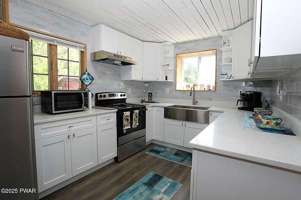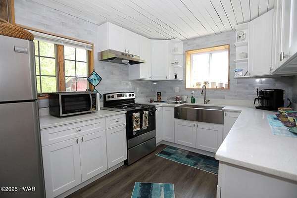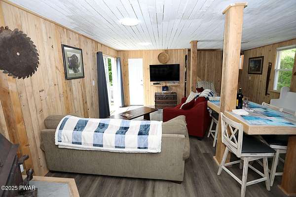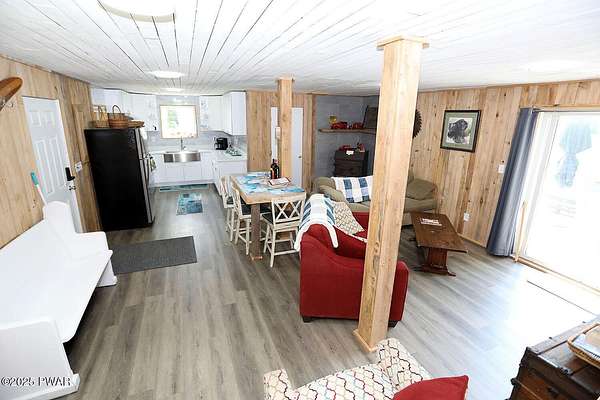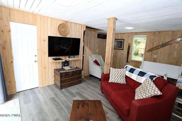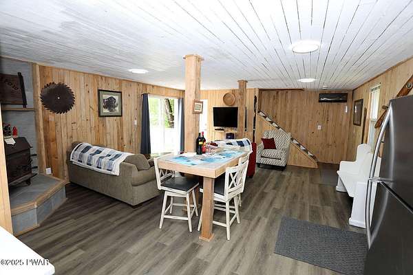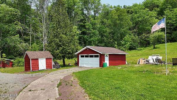 108+/- acres with a chic streamfront cabin. This is a large, forested tract of land, with meadows, rushing stream and active beaver ponds. Many trails run throughout the property making it an outdoor enthusiasts paradise.The house has been tastefully remodeled with a modern kitchen, full bath, open living room and 2 bedrooms upstairs. House has been recently painted. The heat and cooling are electric heat pump mini split units. Need storage? A detached oversized two car garage and outbuildings are set around the homesite. Enjoy the stream and view from a large 16x24 deck, and a private T-deck which is right over the water. A true Catskills getaway, enjoy this private outdoor complex, only 4 miles to the Delaware River and 15 minute drive to Callicoon, New York.