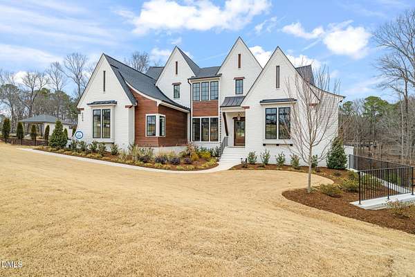 Timeless craftsmanship meets modern sophistication in this exceptional Arts & Crafts-style residence by EDK Design Build, set within the prestigious gated community of Grand Highland Estates-offering serene living with effortless access to RTP and Raleigh. Situated on a sprawling 2.106-acre homesite, the home impresses with stone accents and sleek standing seam metal roof elements that enhance its architectural character. Inside, soaring 11-foot ceilings on the main level create a luminous, open ambiance. The chef-inspired kitchen is the heart of the home, featuring designer appliances, an oversized island, a sunny breakfast room, a scullery, and a butler's pantry connecting to the formal dining room with an elegant coffered ceiling. The spacious family room highlights a striking custom fireplace and built-in cabinetry, with sliding glass doors that lead to a generously appointed covered porch-complete with built-in grill, outdoor heaters, fireplace, and Skyview retractable screens. A lower-level patio offers a tranquil outdoor escape. The first-floor owner's suite is a private retreat, showcasing a spa-style bath with soaking tub, walk-in shower, and dual walk-in closets. A main-level guest suite offers privacy and comfort with its own full bath, walk-in shower, and ample closet space. Upstairs, find additional en suite bedrooms with walk-in closets, flexible living space, and a bonus room with wet bar, built-ins, and dedicated storage. An oversized three-car garage completes this thoughtfully designed home-where luxury and livability are perfectly balanced in one of Wake County's most sought-after communities.