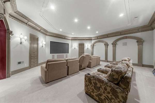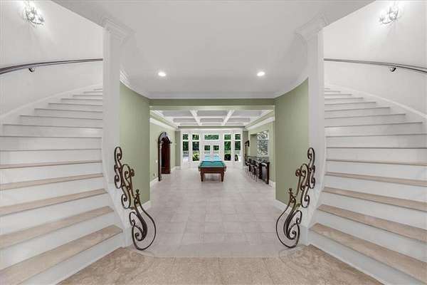 The terrace level is a true retreat, complete with a full bar, theater room, rec space, exercise room with sauna, and two additional bedroom suites--ideal for in-laws or extended guests.