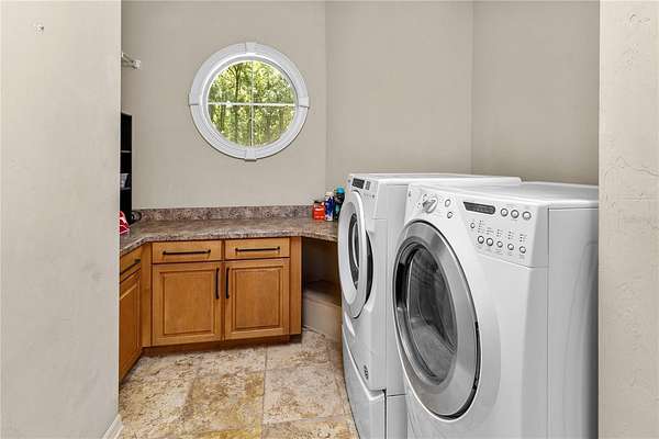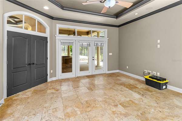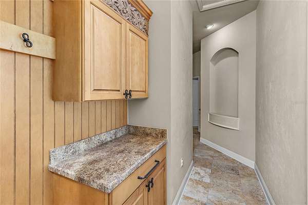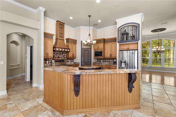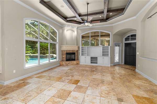 Stunning Finishes: Enjoy the beauty and durability of travertine tile and antique rustic plank wood floors throughout, along with extensive crown moldings.