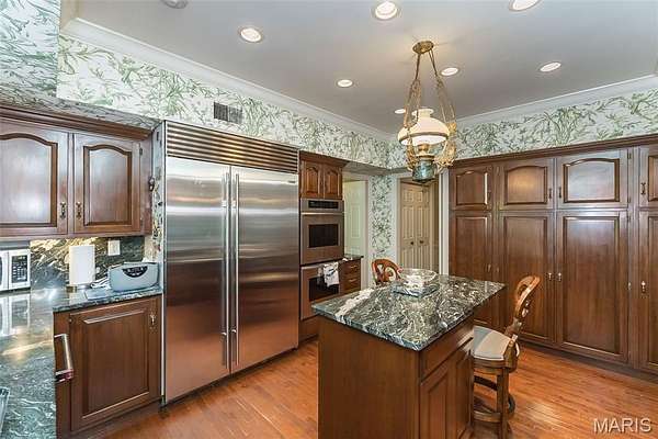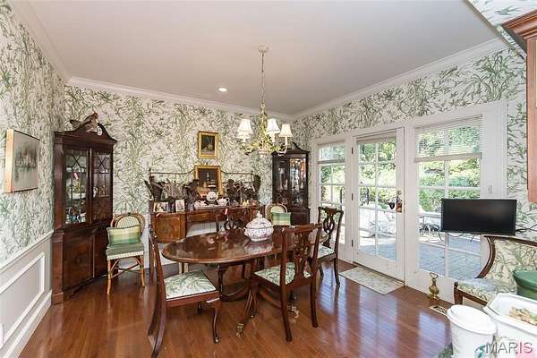 Classic architectural details and a stunning setting on a 1.8-acre property in the heart of Ladue---all the hallmarks of one of the best opportunities available in our Fall Market! The outstanding lot is ideal for buyers looking for the perfect Ladue setting for their dream home. It also offers an unparalleled opportunity for buyers looking to update beautiful, existing construction. The exquisitely detailed 3-bedroom, 3.5 bath home features 5,000+ sq ft of living space, with gorgeous moldings, soaring ceilings, hardwood floors, three gas fireplaces and fabulous millwork throughout. The floorplan features a wide, gallery-style entrance leading to a very spacious living room with floor to ceiling windows and a gas fireplace. The elegant dining room is highlighted by a large bay window overlooking the private, tree-lined backyard. A show-stopping paneled library is everyone's favorite room in the house. The kitchen and breakfast room include stainless appliances and granite counters and overlooks a lovely brick patio. The two main level bedroom suites are well appointed and spacious--the primary suite includes a gas fireplace and charming dressing room, ample closets and built-ins. The lower level includes a third ensuite bedroom, 2 cedar closets, laundry room and jaw dropping unfinished storage. A mudroom and oversized 2-car garage complete the floorplan. This estate is offered in as-is condition. Please call listing agent with questions.