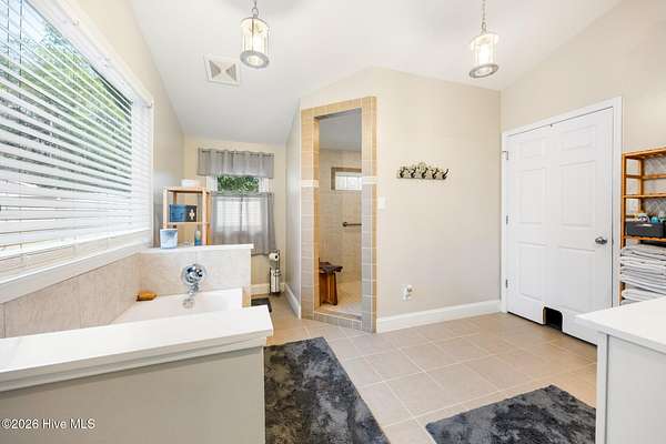 - Bookcases, Ceiling Fan(s), Kitchen Island, Master Downstairs, Pantry, Walk-In Shower