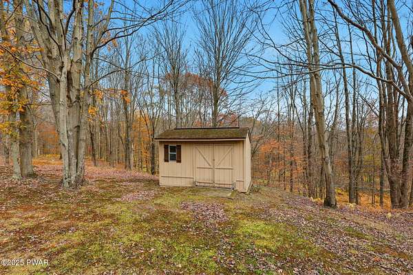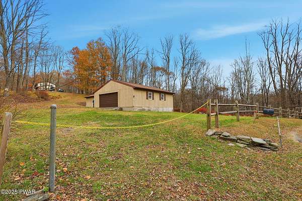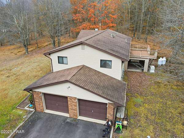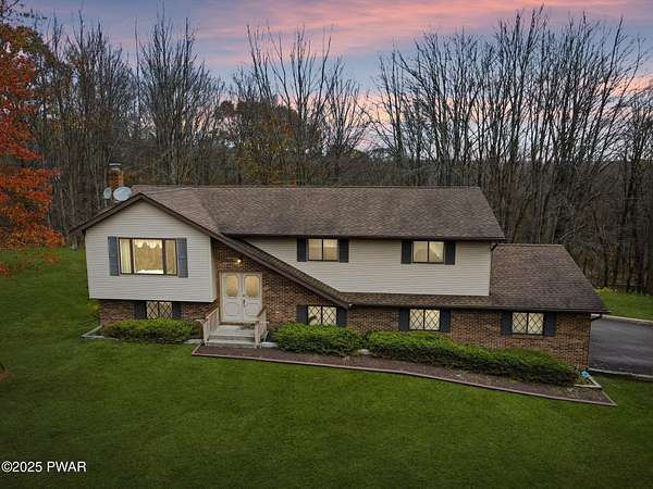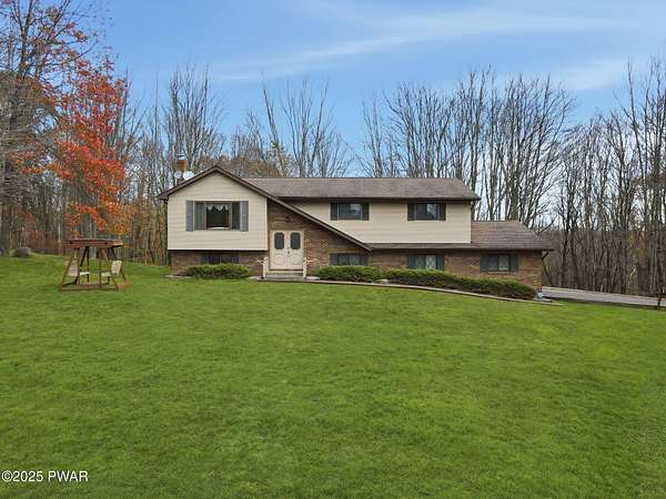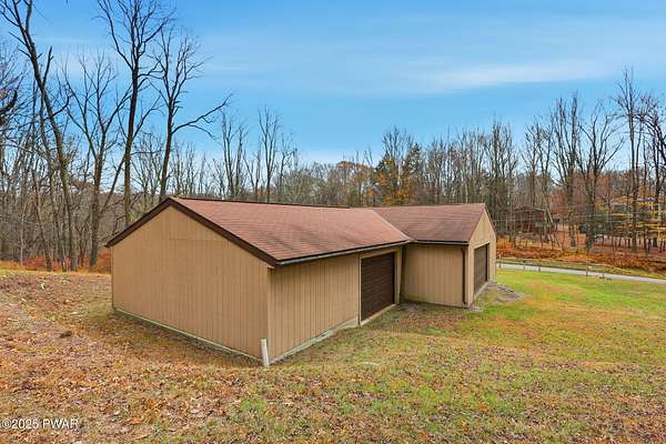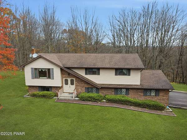 Tucked away on an idyllic woodland knoll only minutes to Lake Wallenpaupack, this classic 3 bedroom/2.5 bath split-level home on over 8 acres is sure to please! A stately serene setting flush with wildlife gives way to this very well built plus meticulously maintained home featuring an upper/lower split plan perfect for a little extra elbow room. The upper level boasts a bright open kitchen/dining room/living room floorplan with ample natural light plus direct access to the deck, an oversized primary bedroom with double closets (one walk in) and ensuite bath, a second bedroom and a 2nd full bath with tub. On the lower level you will find a cozy family room with wood-burning stove, the 3rd bedroom, a utility room with washer/dryer plus a half bath. An oversized 2 car garage with direct access to the lower level plus additional enclosed storage under the deck and a detached shed will give you space for everything! Rest easy with a whole house stand by ready generator any time you need it. But wait - there's more! This one-of-a-kind property also features a detached 5 + car garage perfect for storing toys of all kinds! Whether it's a special place for your classic car collection, a small boat, jet skis or maybe a woodworking hobby shop, this exceptional first time on the market property offers something for everyone! Be sure to reserve your private showing today!